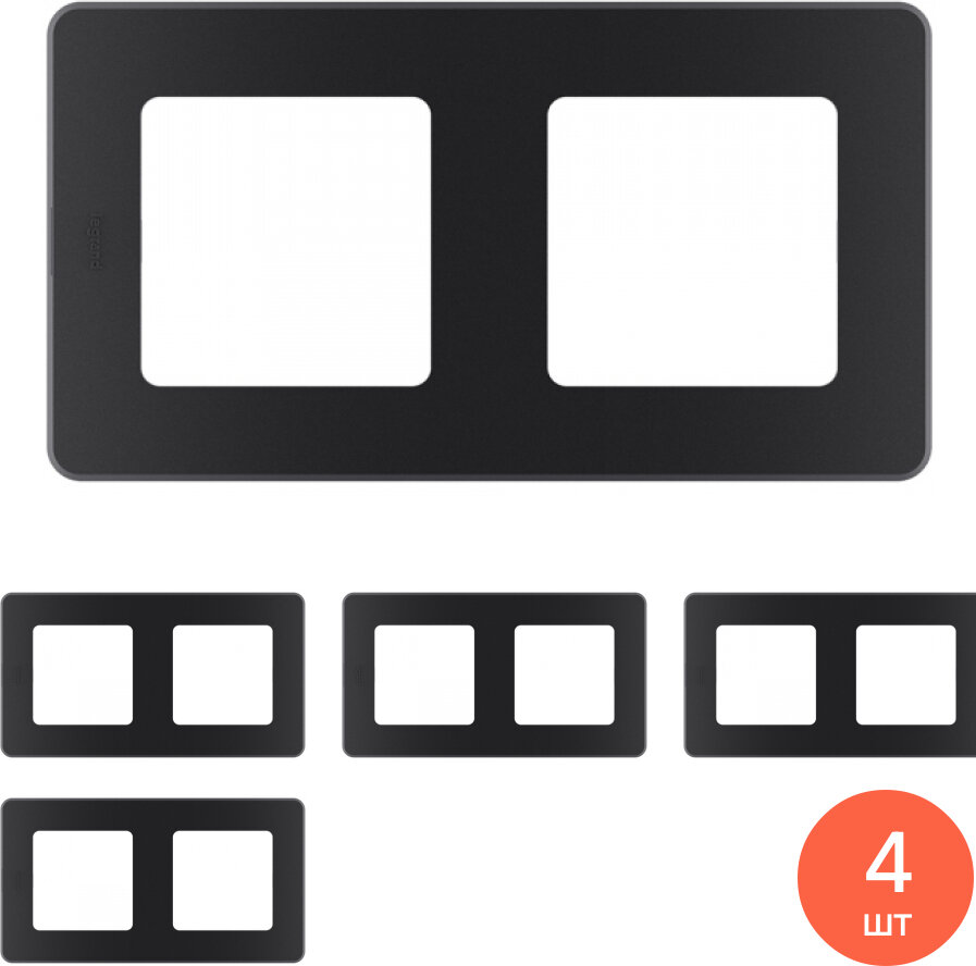 4шт. - Рамка 2 поста INSPIRIA антрацит / Legrand; арт. 673943; оригинал / - комплект 4шт