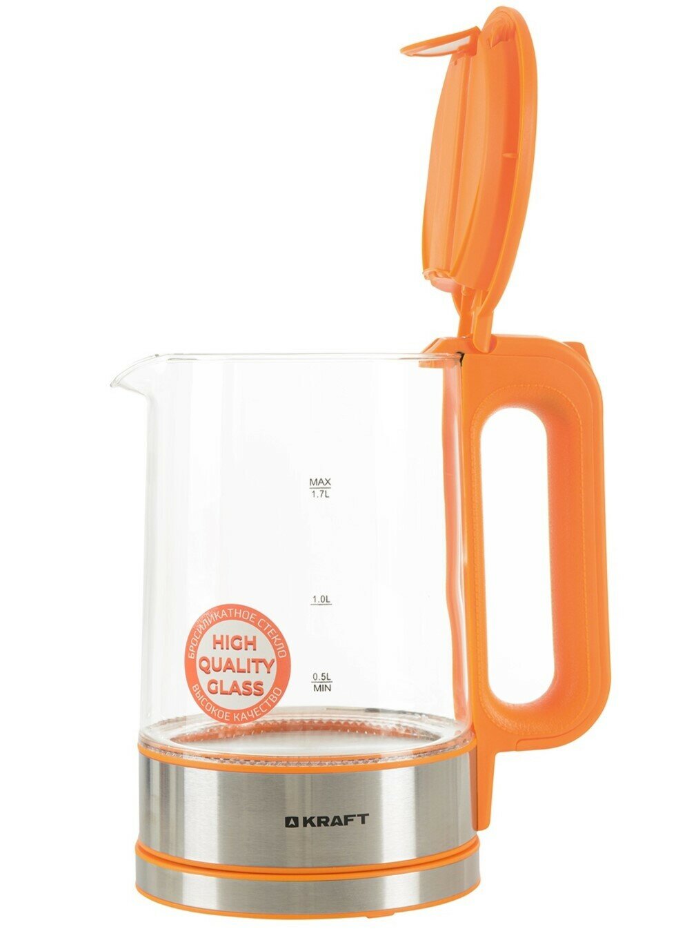 Чайник электрический KRAFT KF-KG1708OR 1.7л, 2200Вт, стекло, пластик