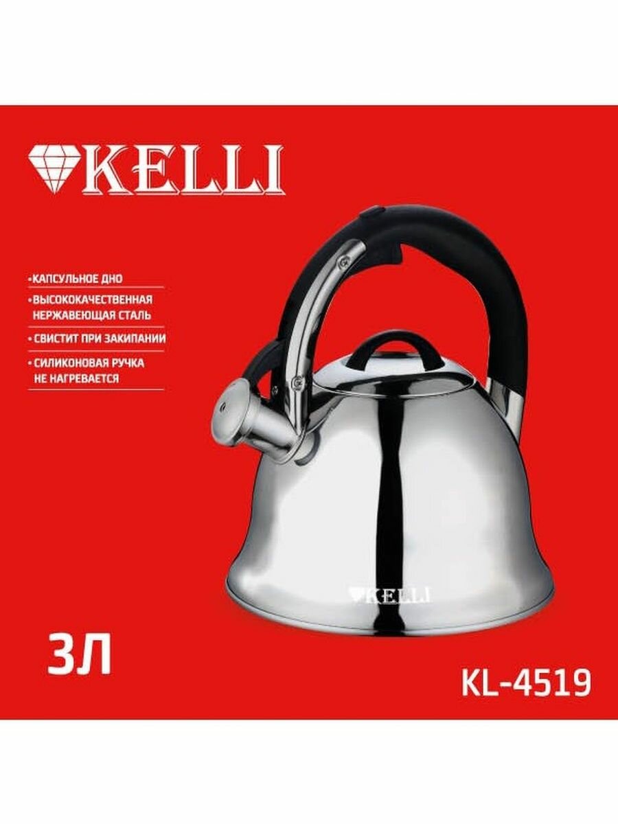 Купить Kelli Чайник со свистком KL-4519 3 л, серебристый
