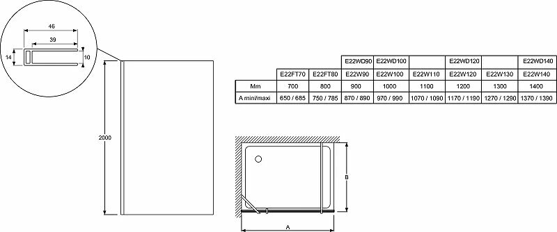 Жесткая душевая стенка Jacob Delafon Contra 1400*2000 мм E22W140-GA