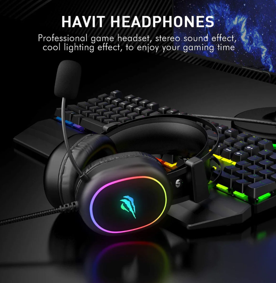 Проводные игровые (геймерские) наушники Havit H659d накладные для компьютера с микрофоном черные, RGB подсветка