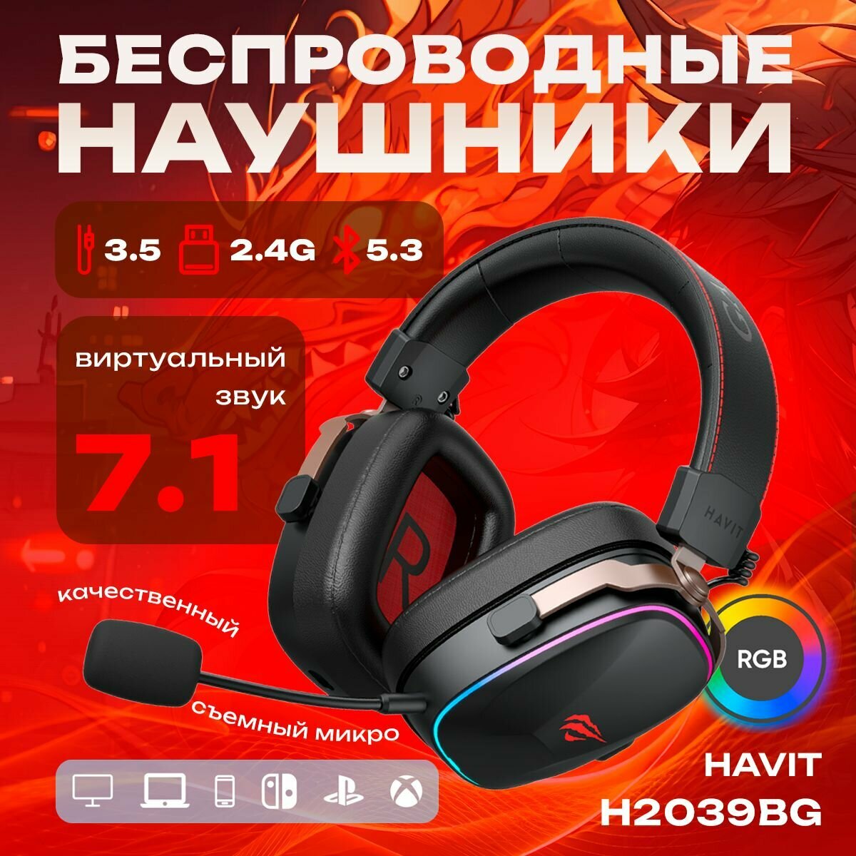 Беспроводные наушники Havit Fuxi H7 с микрофоном, игровые, черный