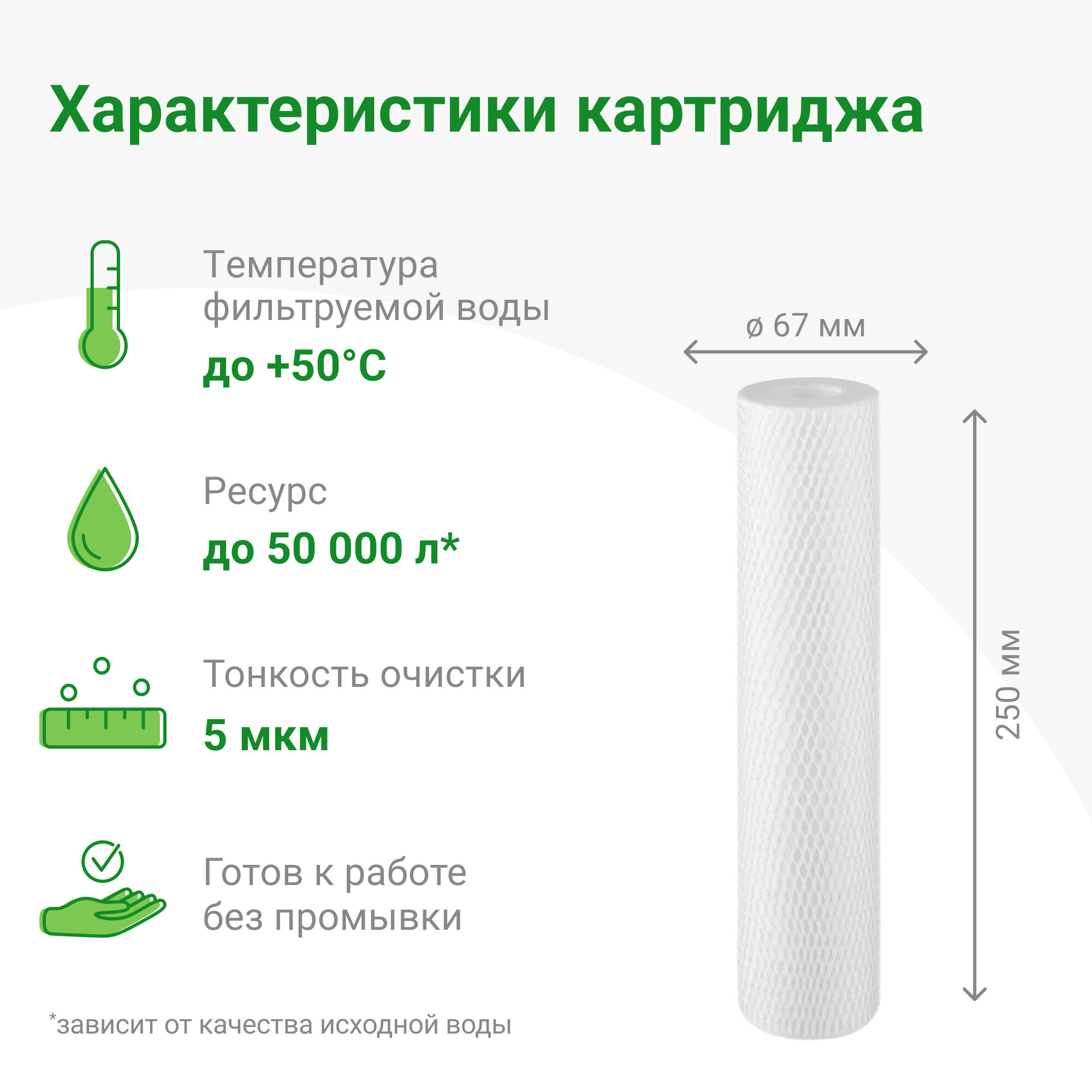 Купить Картридж полипропиленовый ПФМ 10/5 - 10SL, для механической очистки, 28253