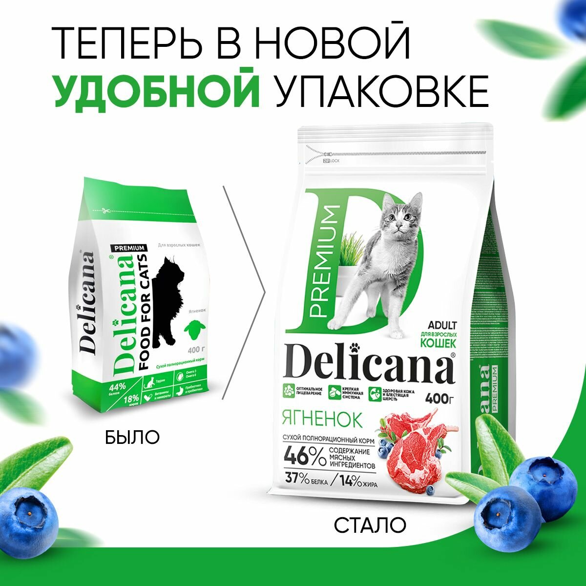 Купить DELICANA Корм сухой для взрослых кошек с ягненком 400 г
