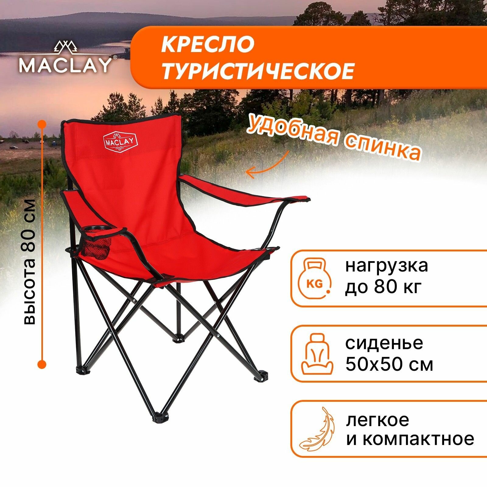 Кресло Maclay, туристическое, с подстаканником, до 80 кг, размер 50 х 50 х 80 см, цвет красный