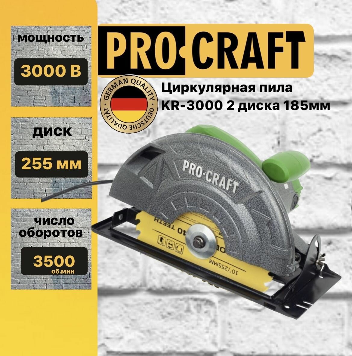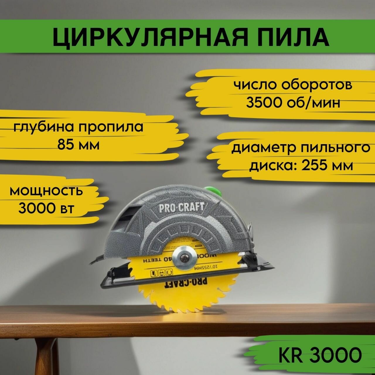Циркулярная пила дисковая ProCraft KR3000 диск 255мм, пропил 85мм, 3500об/мин, 3000Вт