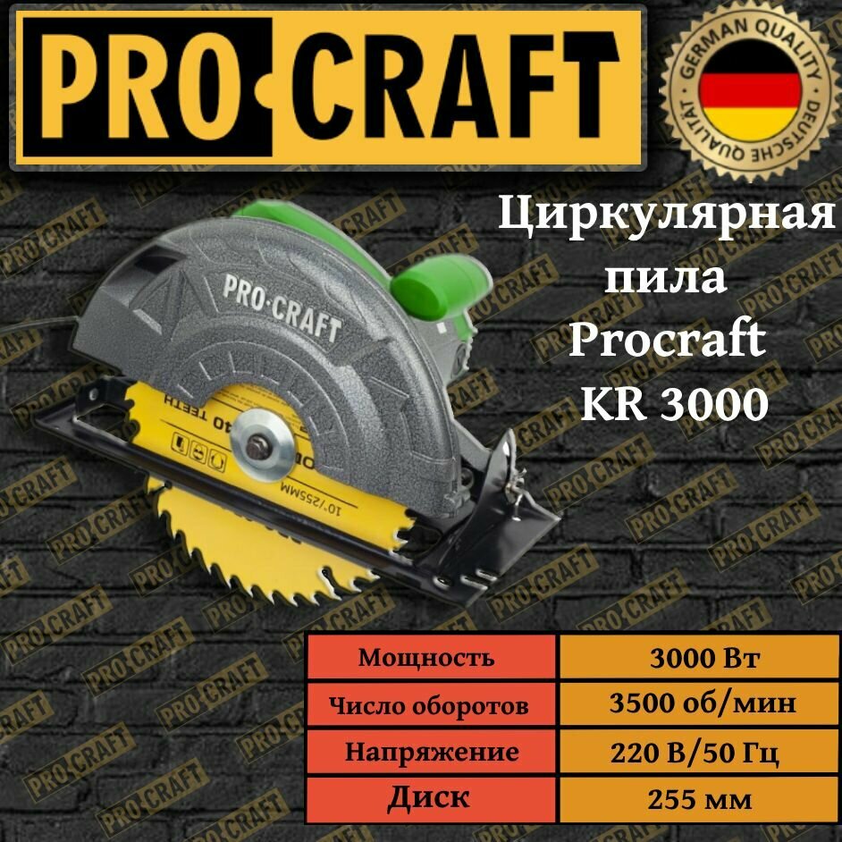 Циркулярная дисковая пила Pro-Craft Professional KR3000. 255диск, 3000Вт. интересное: