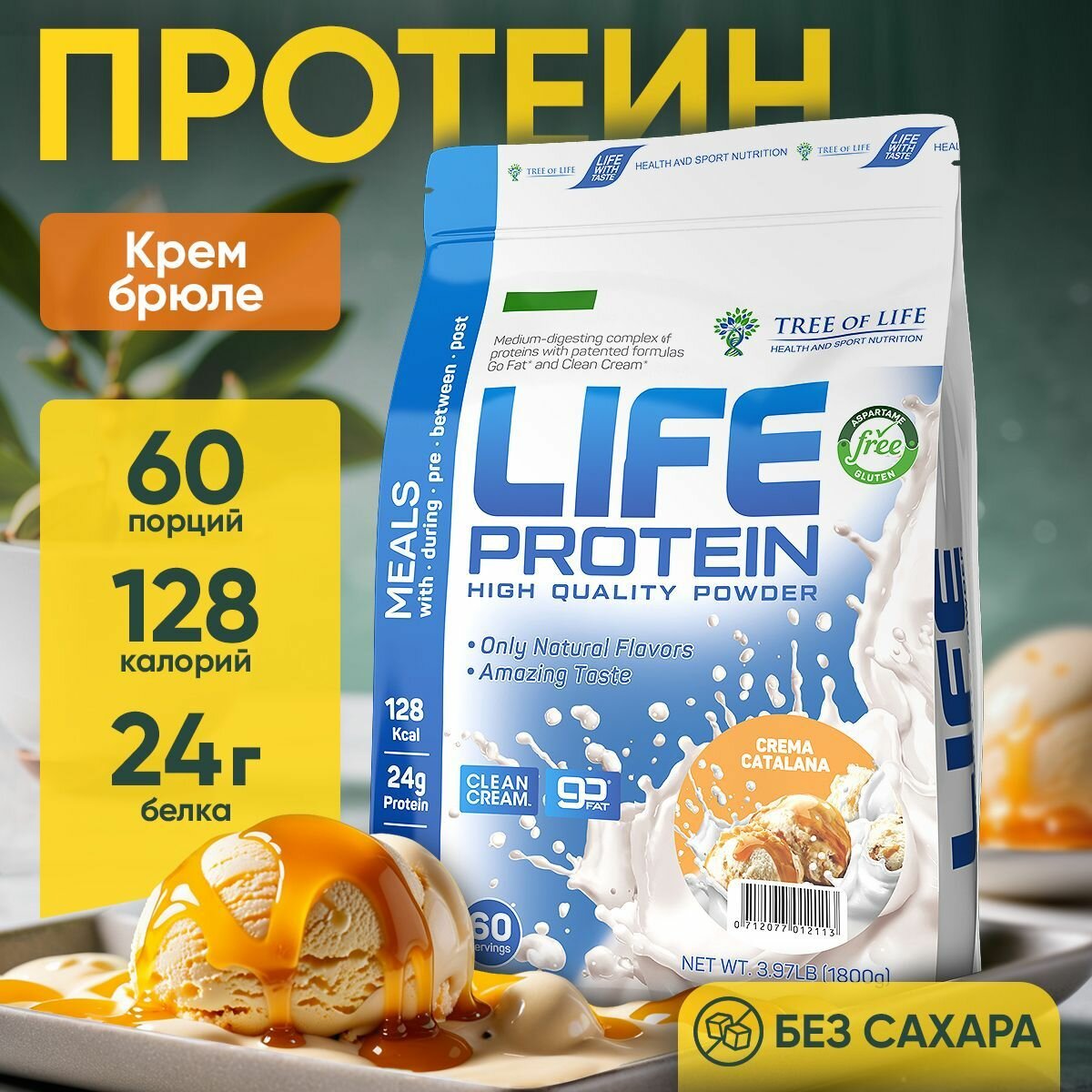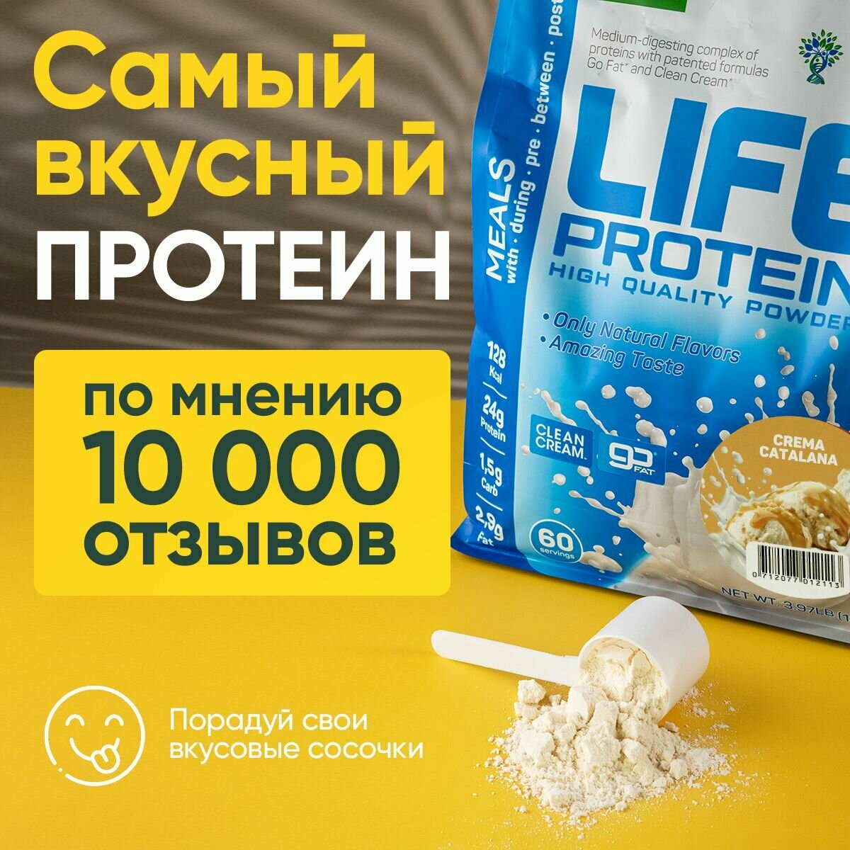 Купить Протеин сывороточный + Изолят Life Protein 4LB. Мультикомпонентный белковый коктейль "Крем Брюле" здоровое питание для похудения и сушки, набора мышечной массы 1800 г.