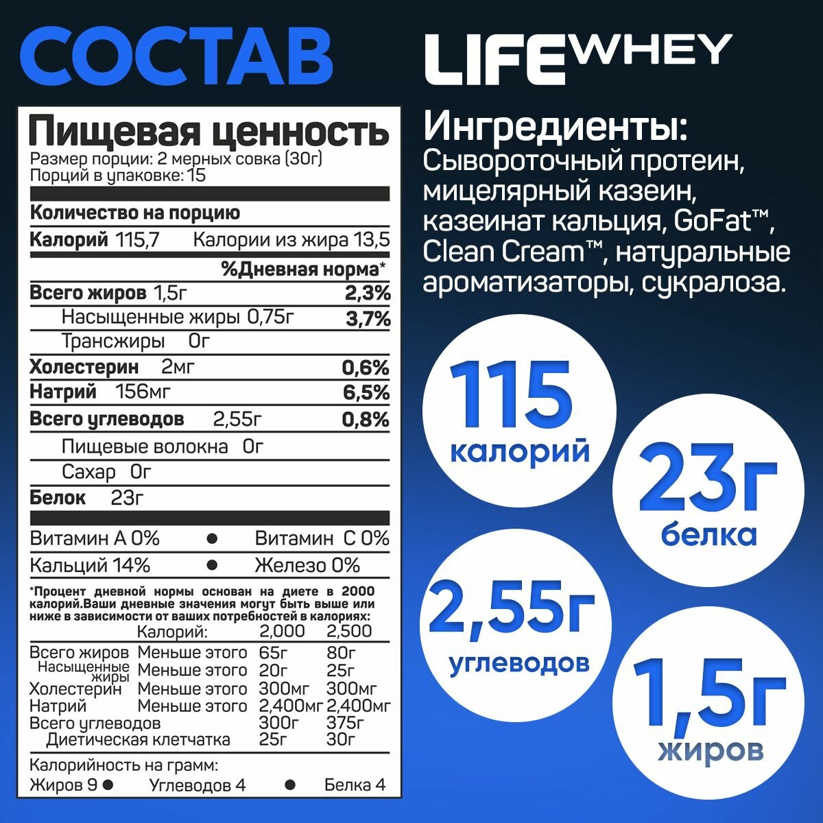 Протеин Life Whey 450г, 15 порций, Фисташковое мороженое