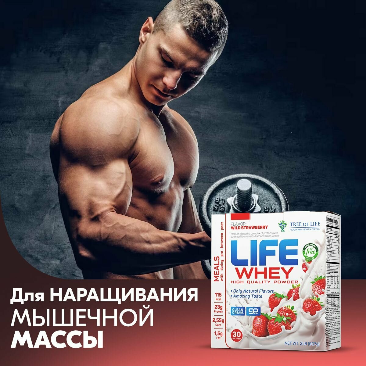 LIFE WHEY 907 gr, 30 порции(й), клубника