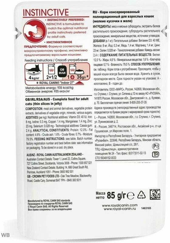 ROYAL CANIN INSTINCTIVE влажный корм для взрослых кошек в желе 85 гр х 24 шт