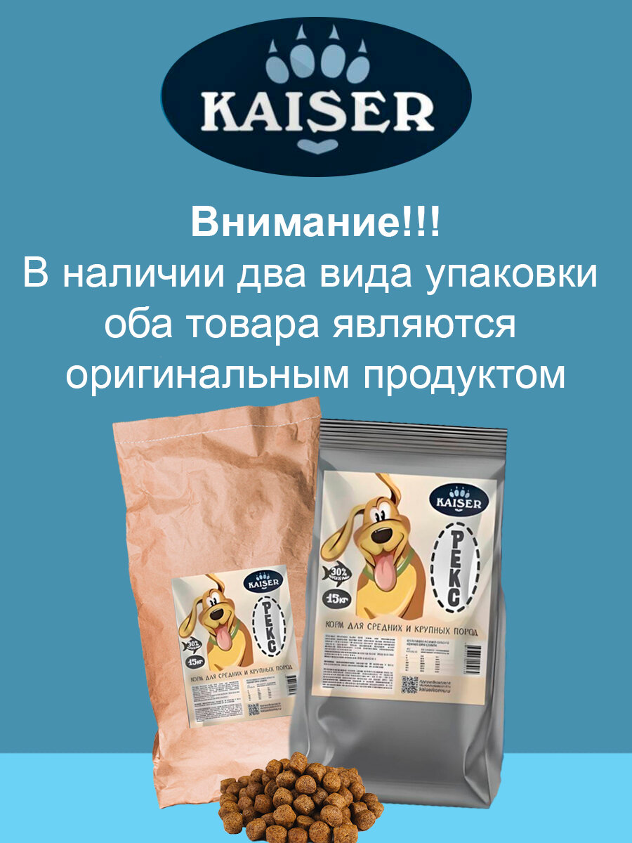 KAISER Полнорационный Сухой корм для собак средних и крупных пород REX - "Лосось ", 15 кг интересное:
