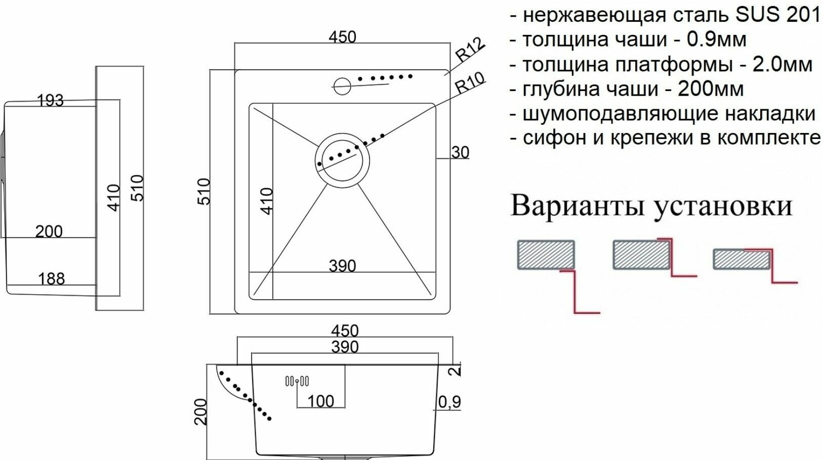 | Дополнительная информация | толщина стали 0,9 мм; сифон и крепежи входят в комплект |