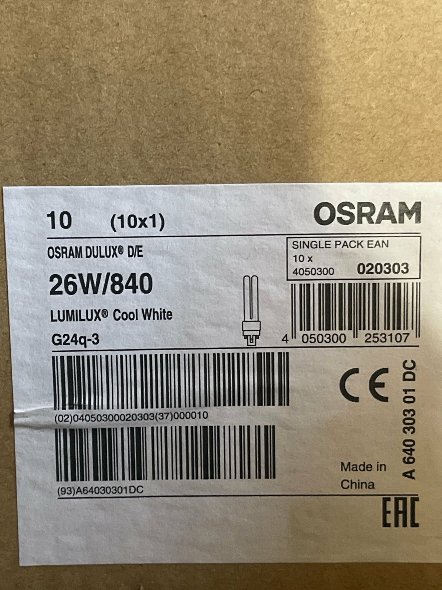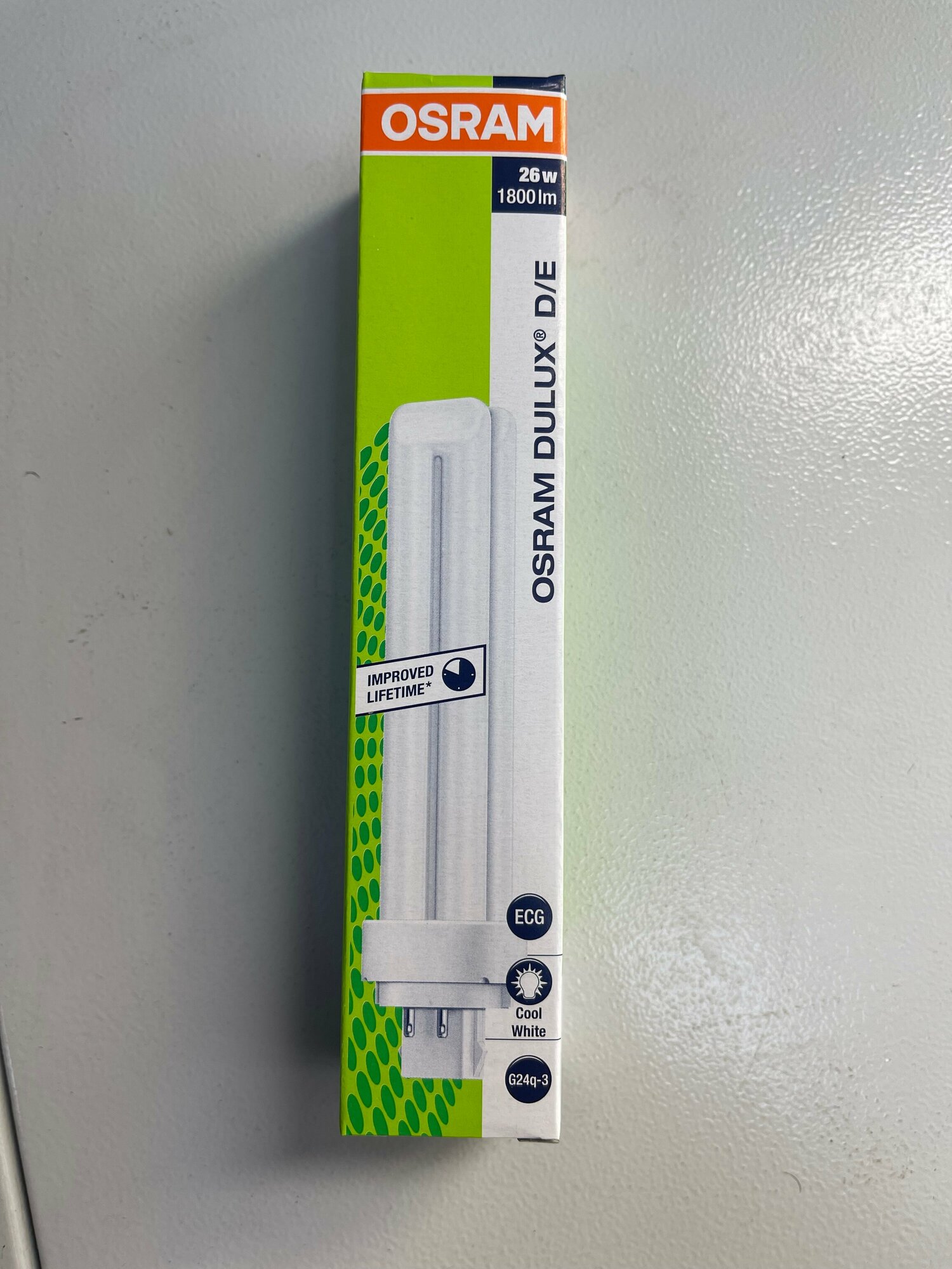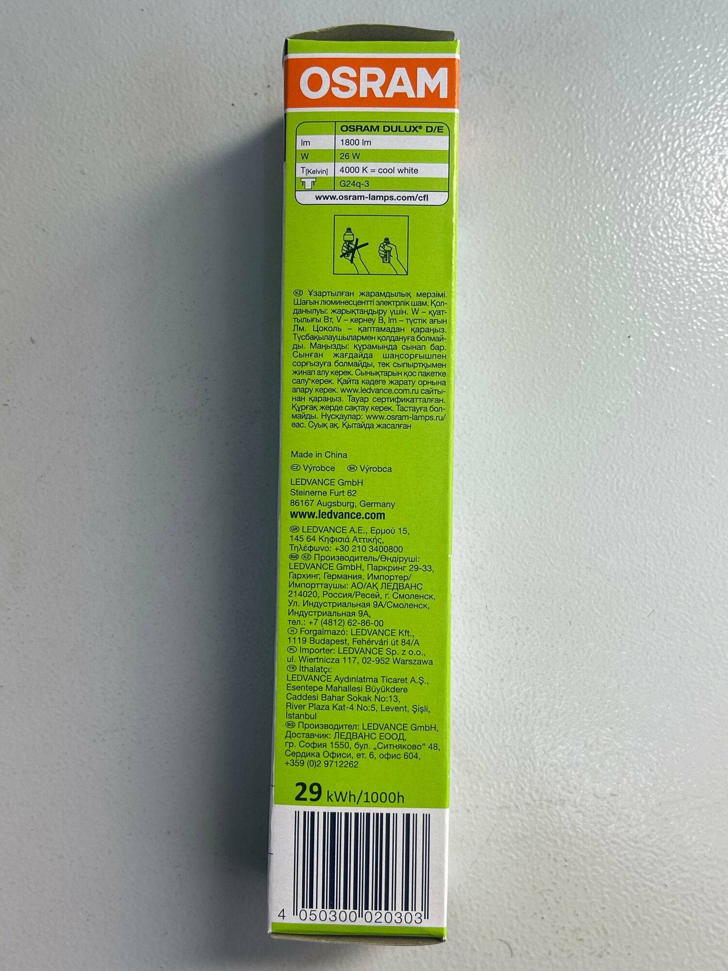 Ниже Вы можете прочитать отзывы на Лампа компактная люминесцентная КЛЛ энергосберегающая 26Вт G24Q-3 Dulux D/Е 26W/840 4000К холодный свет 165х34 4050300020303 / 4099854122453 OSRAM, ознакомится с подробными характеристиками, посмотреть интересные обзоры и фотографии на Лампа компактная люминесцентная КЛЛ энергосберегающая 26Вт G24Q-3 Dulux D/Е 26W/840 4000К холодный свет 165х34 4050300020303 / 4099854122453 OSRAM.