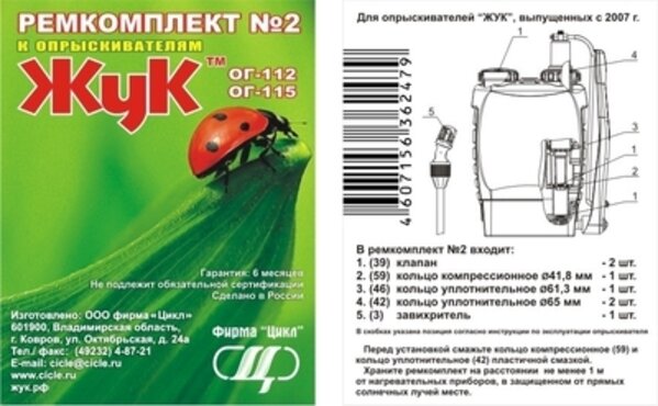 Ремкомплект Cicle Жук 2 4607156362479 для опрыскивателей ОГ-112, ОГ-115 . интересное: