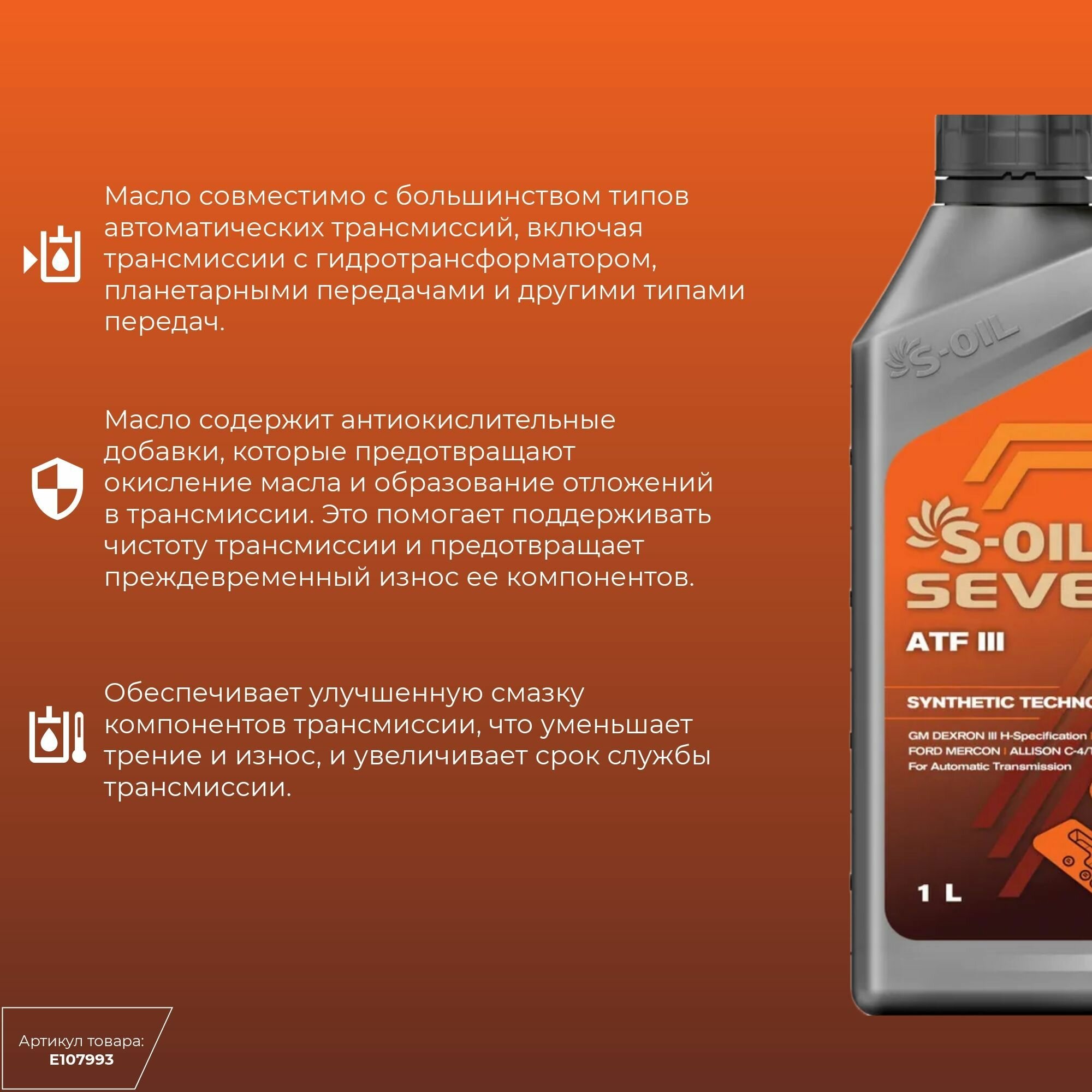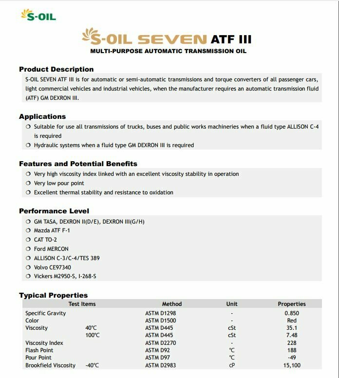 S-OIL E107993 S-OIL Масо трансмиссионное SEVEN ATF III 1 интересное: