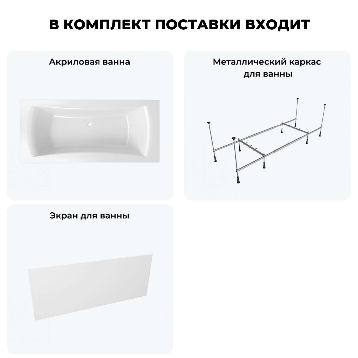 Акриловая ванна 180х80 см Lavinia Boho Evan набор 3 в 1 S2-37110180: прямоугольная ванна, металлический каркас, лицевой экран