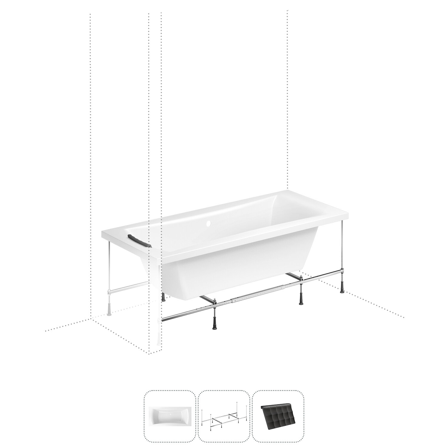 Купить Акриловая ванна 170x75 с каркасом Lavinia Boho Evan S1-3711017P в наборе 3 в 1: прямоугольная ванна 170 x 75 см, каркас, подголовник