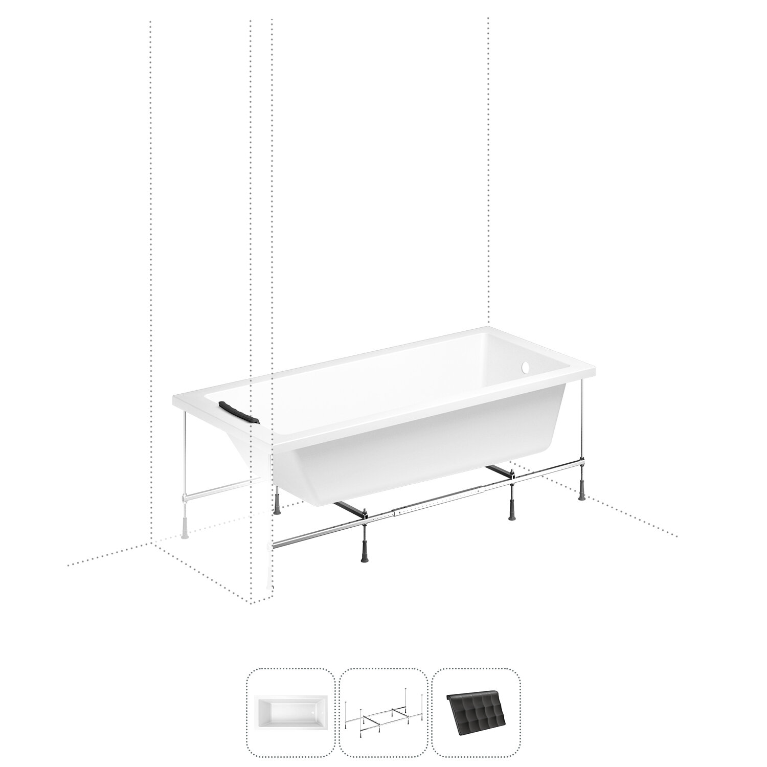 Акриловая ванна 170х80 см Lavinia Boho Catani набор 3 в 1 S1-371217PR: ассиметричная ванна (правый разворот), металлический каркас, подголовник