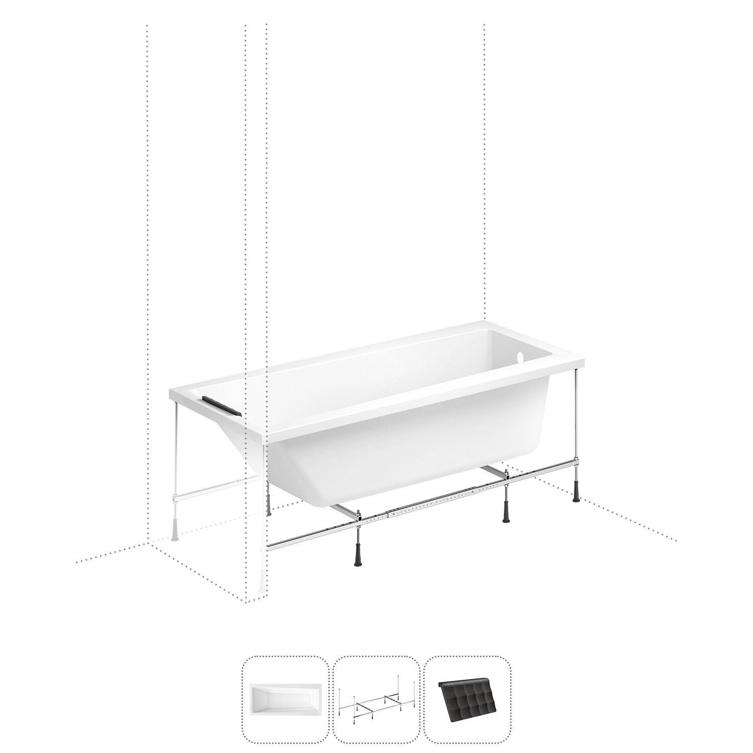 Купить Акриловая ванна 170x75 с каркасом Lavinia Boho Rock S1-3707075P в наборе 3 в 1: прямоугольная ванна 170 x 75 см, каркас, подголовник