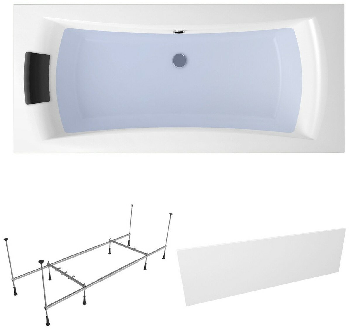 Акриловая ванна 180x80 с каркасом и экраном Lavinia Boho Evan S2-3711018P в наборе 4 в 1: прямоугольная ванна 180 x 80 см, каркас, экран, подголовник