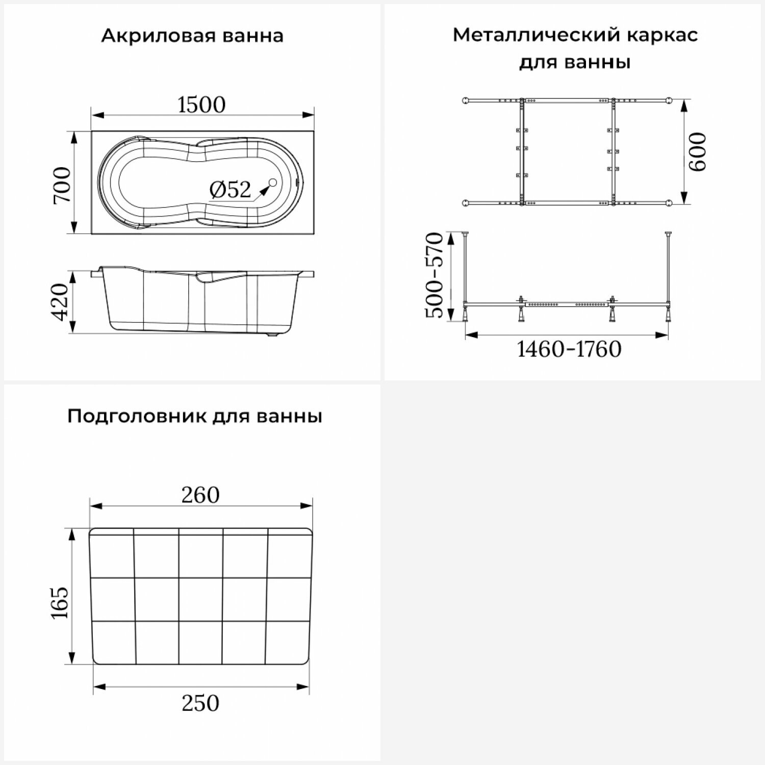Акриловая ванна 150х70 см Lavinia Boho Easter Pro набор 3 в 1 S1-3706005P: прямоугольная ванна, металлический каркас, подголовник