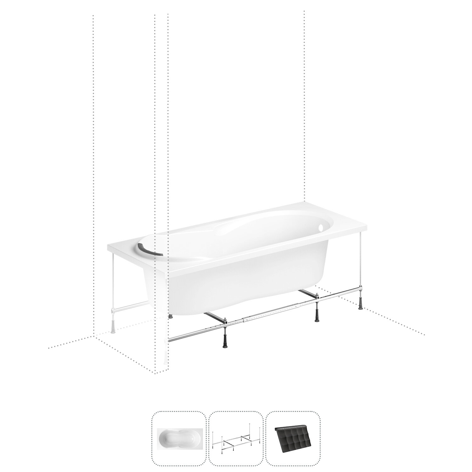 Ванна акриловая 170х75 Lavinia Boho Easter Pro S1-3706075P в наборе 3 в 1: прямоугольная ванна 170 х 75 см, усиленный металлический каркас, мягкий подголовник