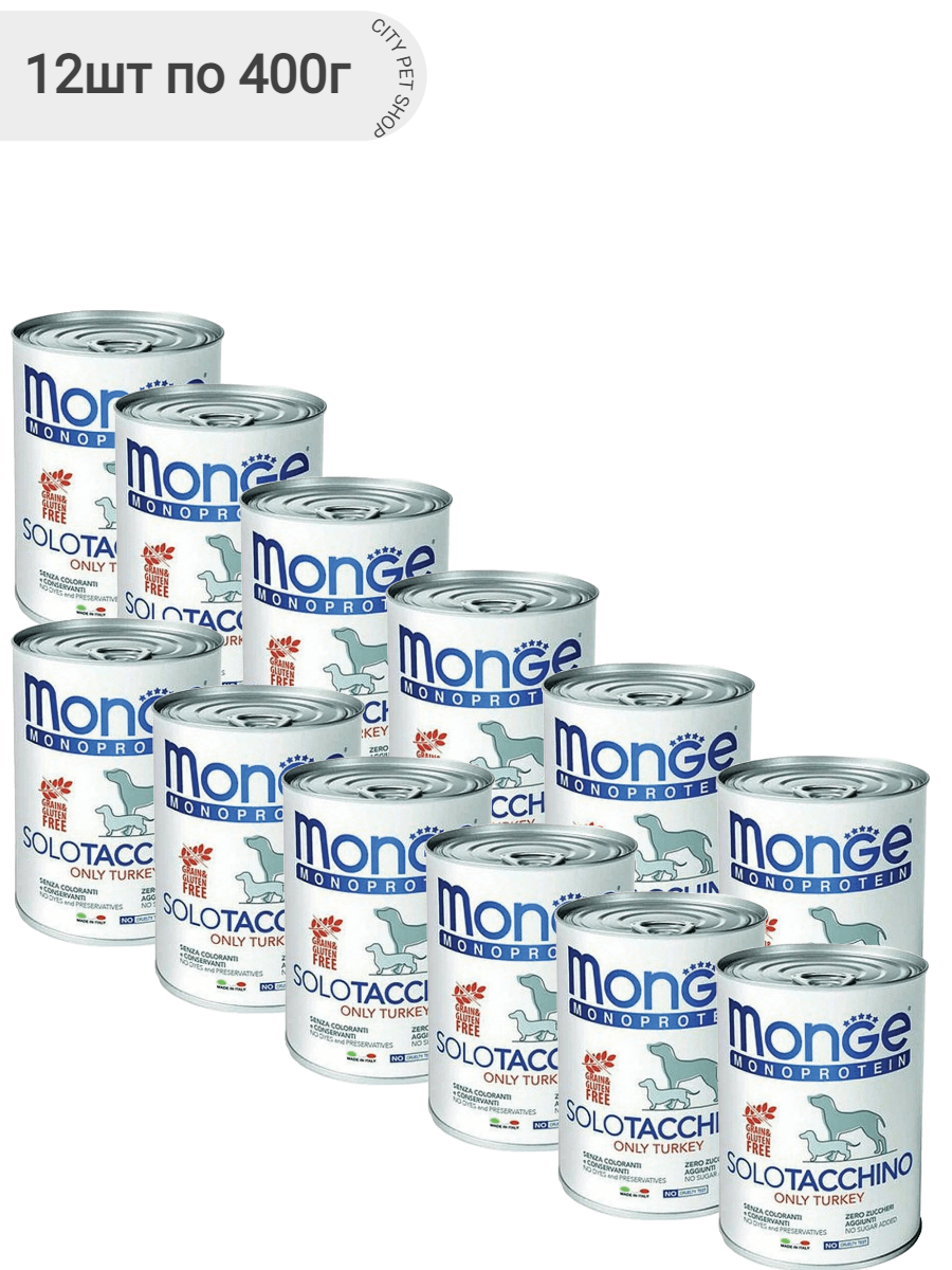 Monge Dog Monoprotein Solo консервы для собак паштет из индейки 400г х 12 шт.