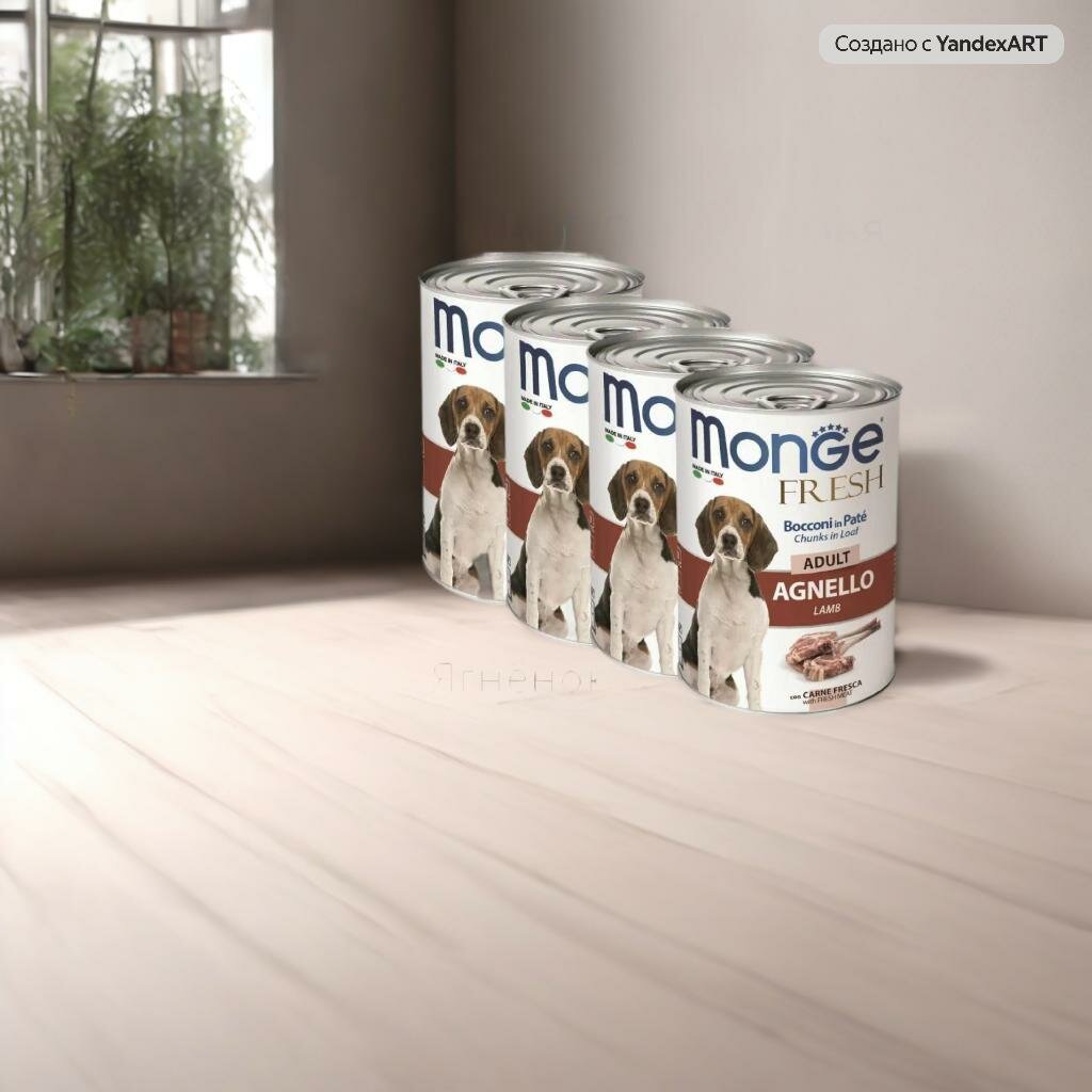Влажный корм для собак Monge Dog Fresh Adult Chunks in Loaf AGNELLO, мясной рулет, ягненок, 4 шт. х 400 г