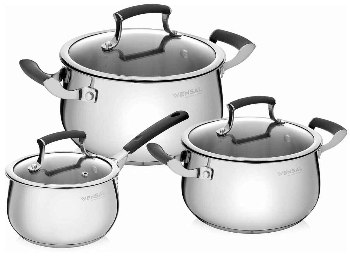 Купить Набор посуды Vensal Nouvel accord из двух кастрюль 3,6 л, 6,1 л и ковша 1,9 л со стеклянными крышками