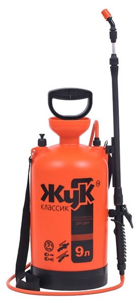 Жук Опрыскиватель помповый ОП-207, 9 л, термоусадка, пластиковый брандспойт 208, «Жук» интересное: