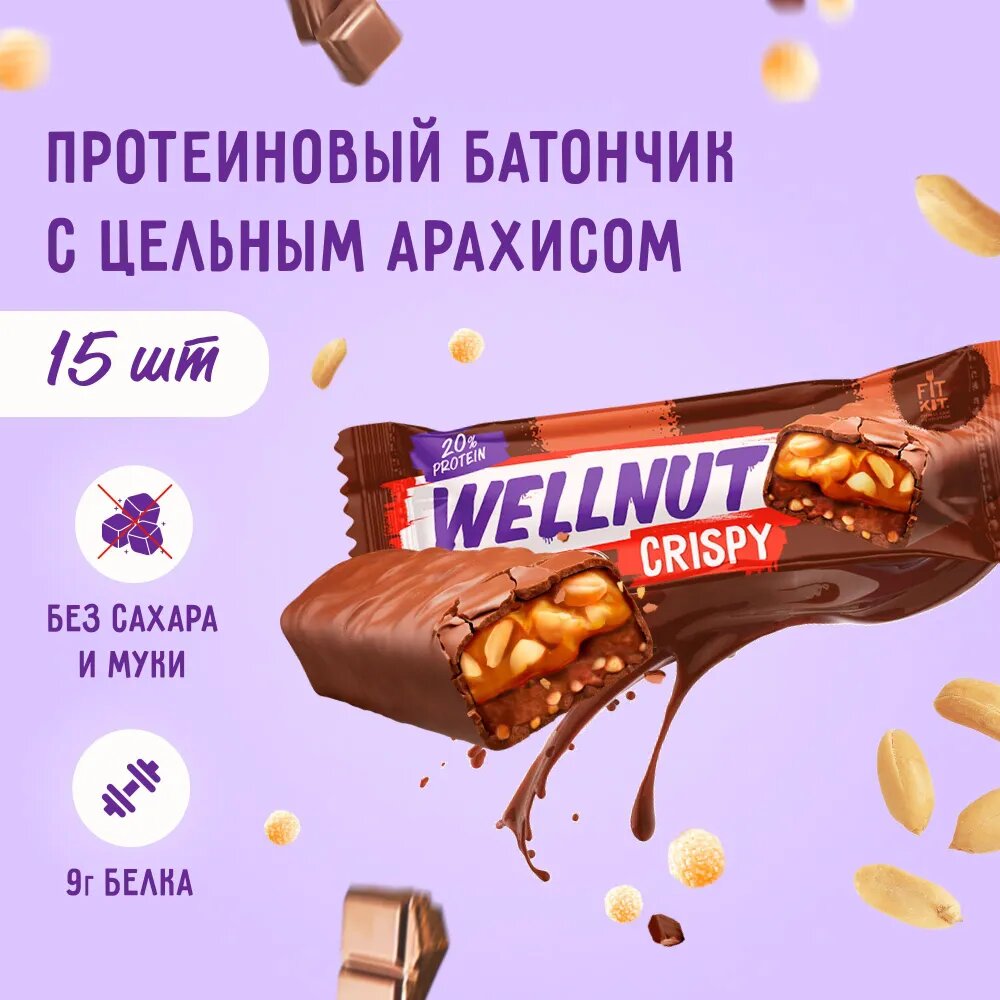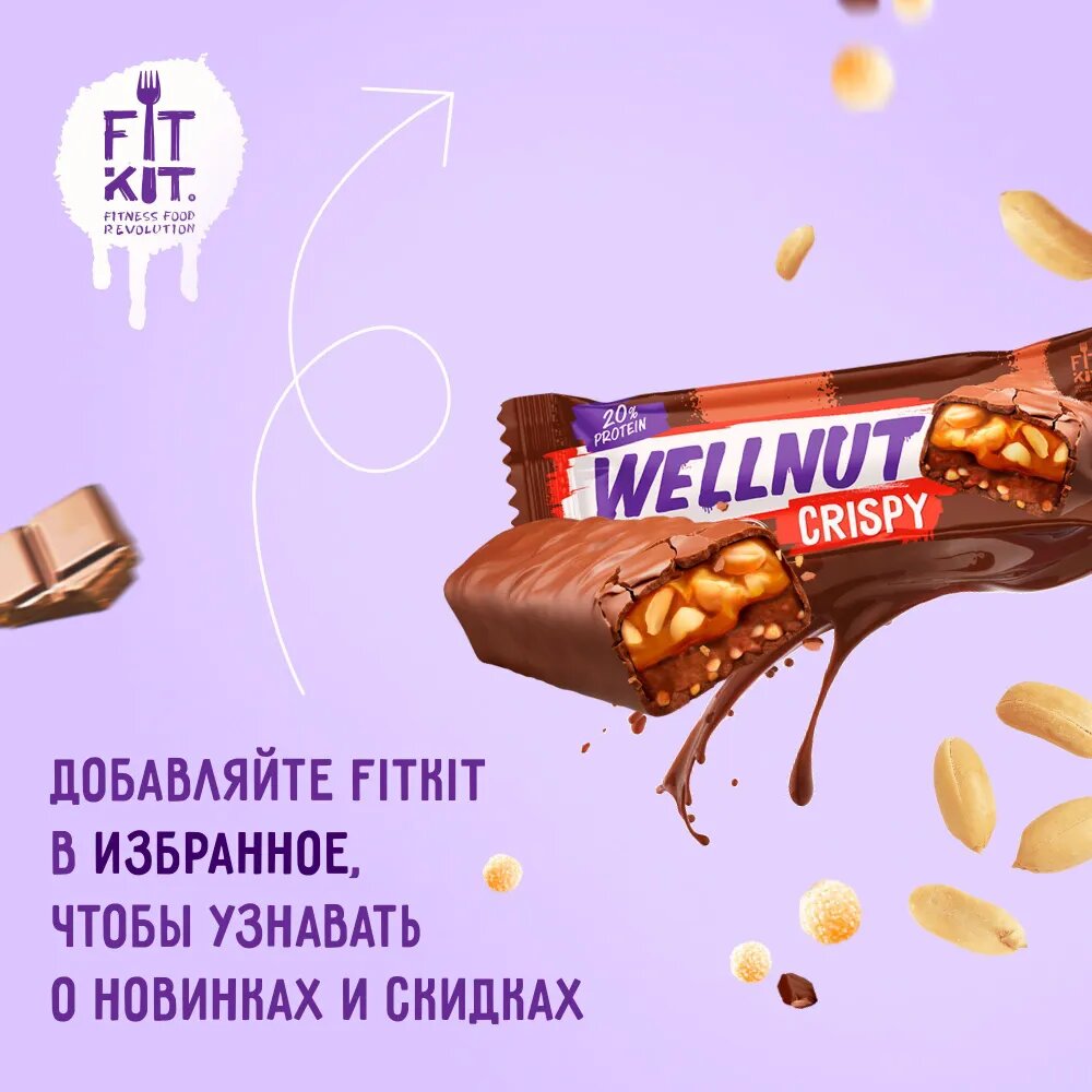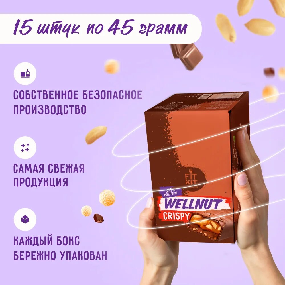 Купить Fit Kit Protein Wellnut Crispy - 15 штук в упаковке