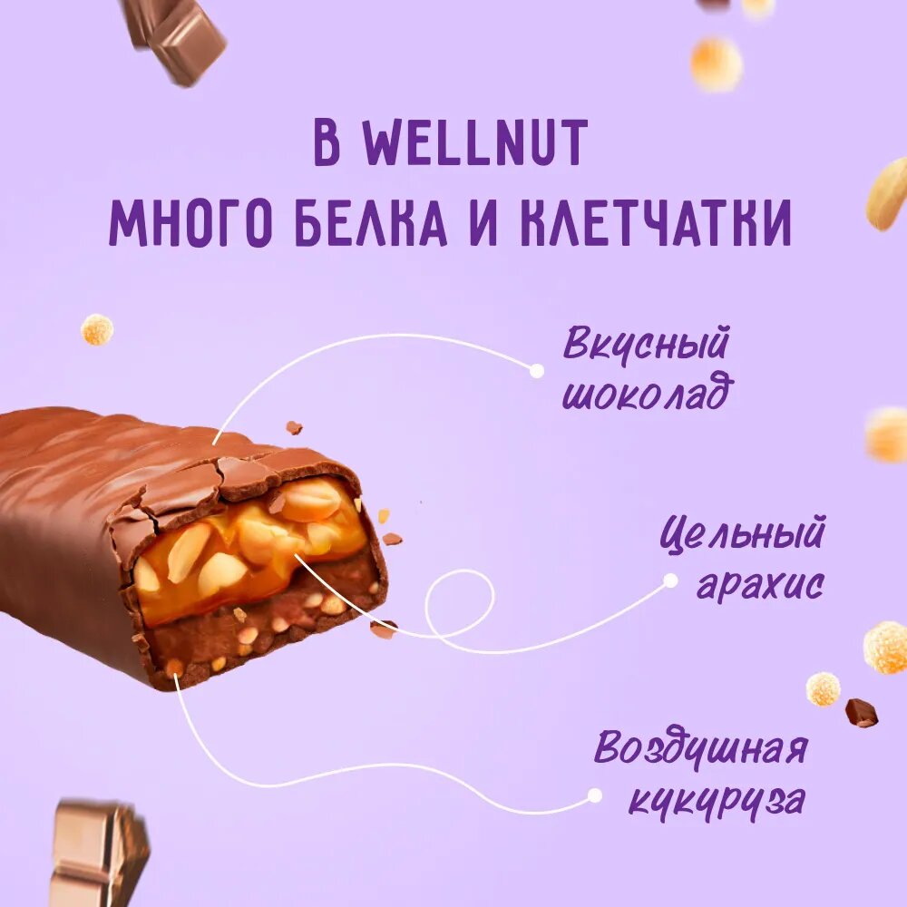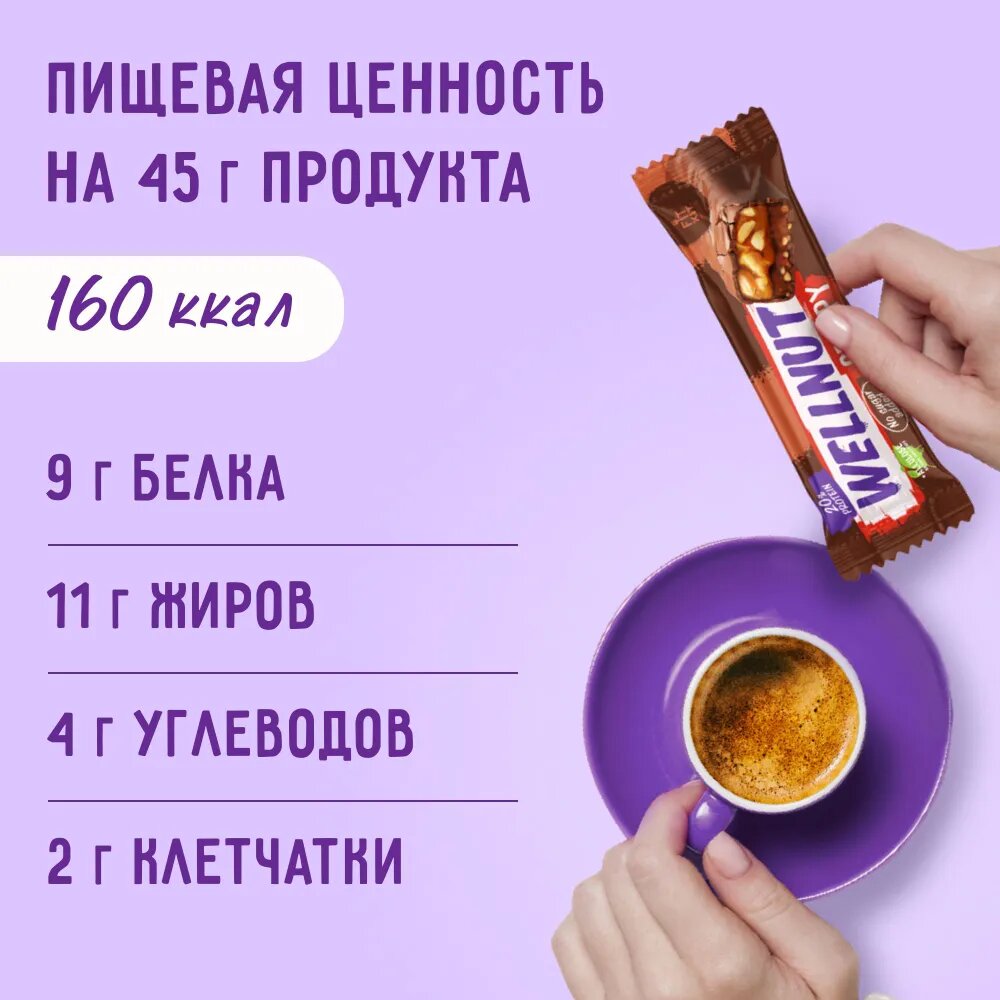 Шоколадный батончик WELLNUT CRISPY 45 г х 15 шт. без сахара