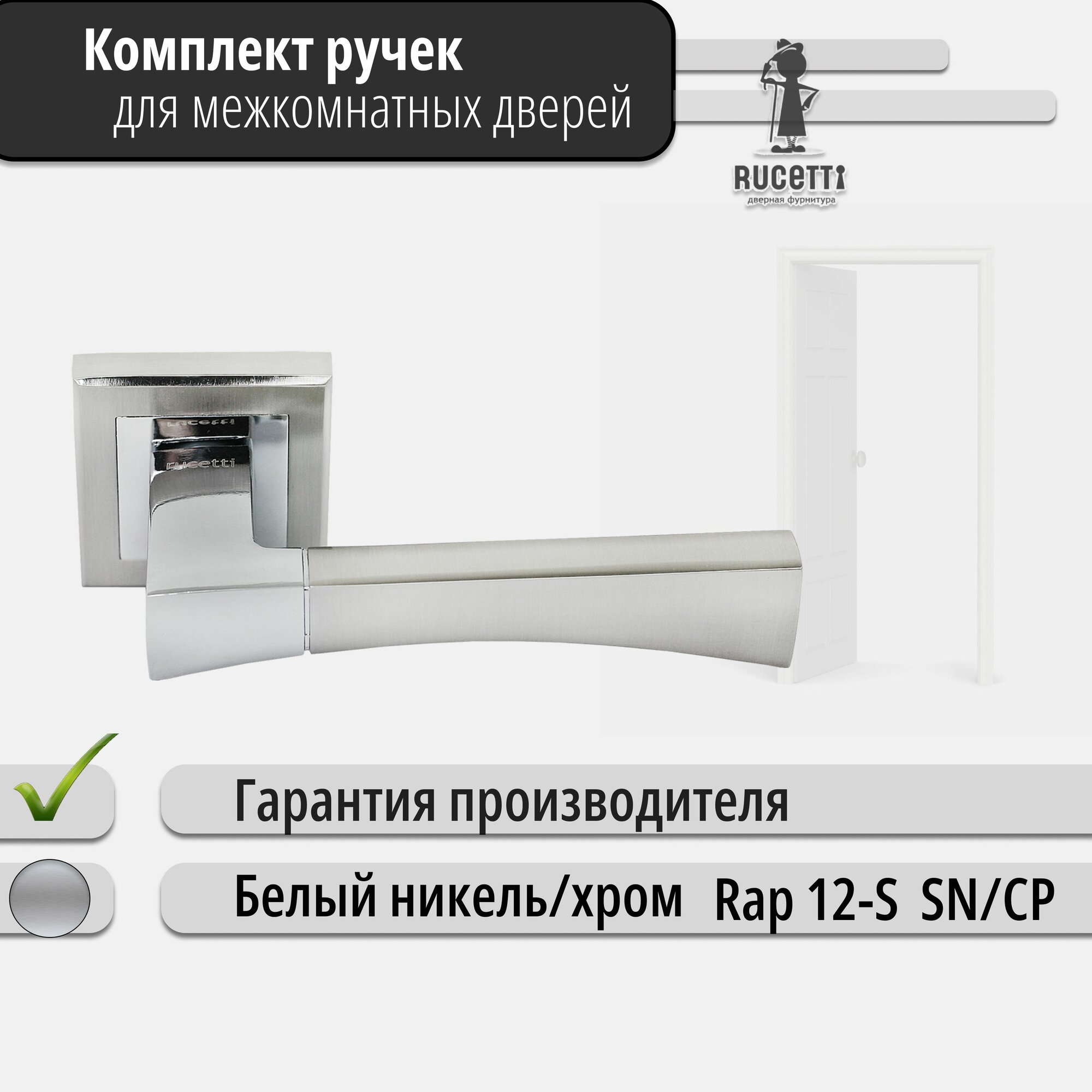 Купить Ручка дверная межкомнатная Rucetti Rucetti RAP 12-S SN/CP белый никель/хром, комплект ручек для дверей на квадратной розетке