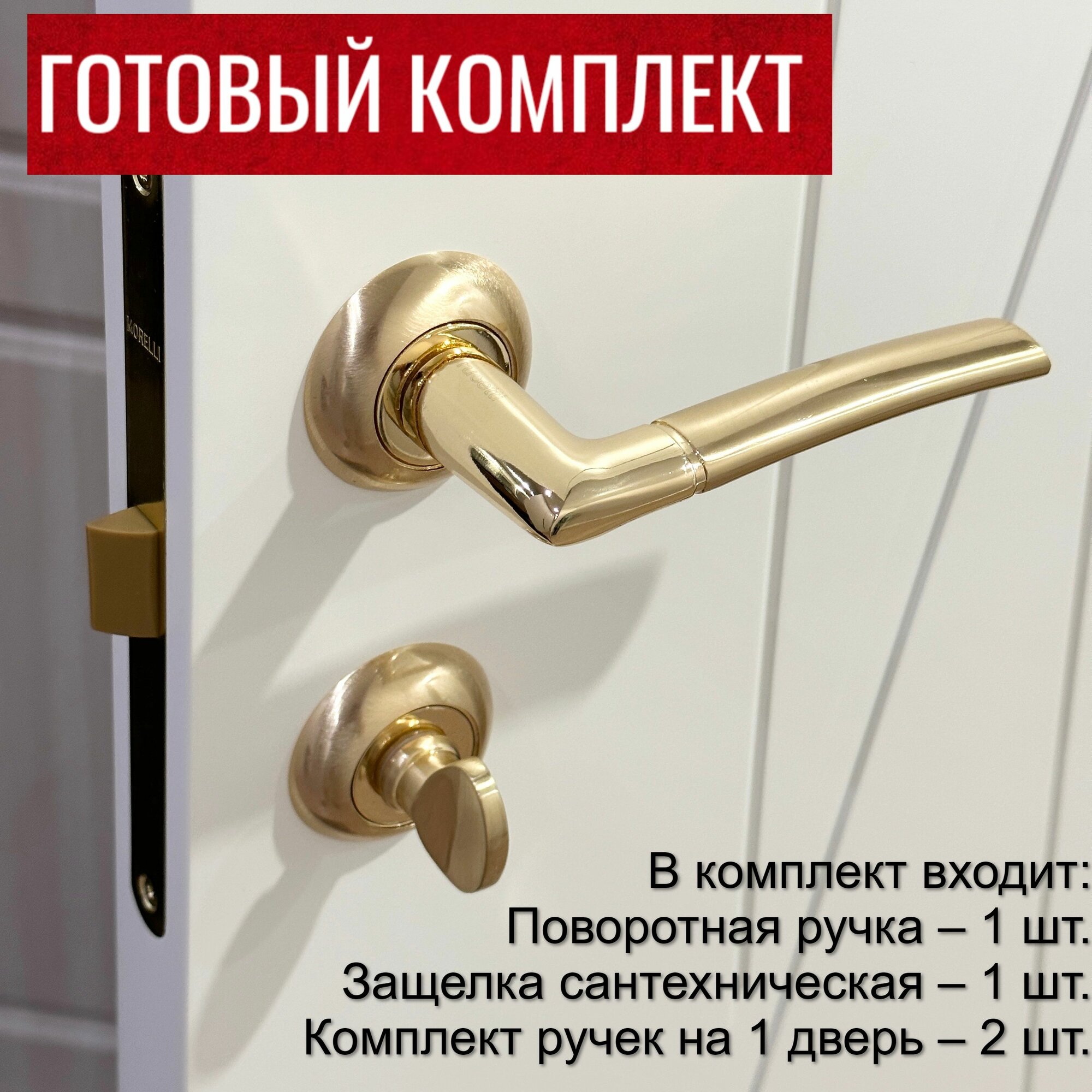 Дверная ручка Rucetti (Ручетти) RAP 6 SG/GP + Межкомнатный замок Morelli (Морелли) 1895P PG + Сантехническая завертка RAP WC SG/GP / Межкомнатные дверные ручки с замком и фиксатором