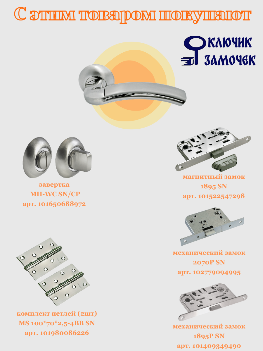 СохранитьРучка дверная гладкая Morelli MH-02 SN/CP белый никель/хром / комлект для межкомнатных дверей интересное: