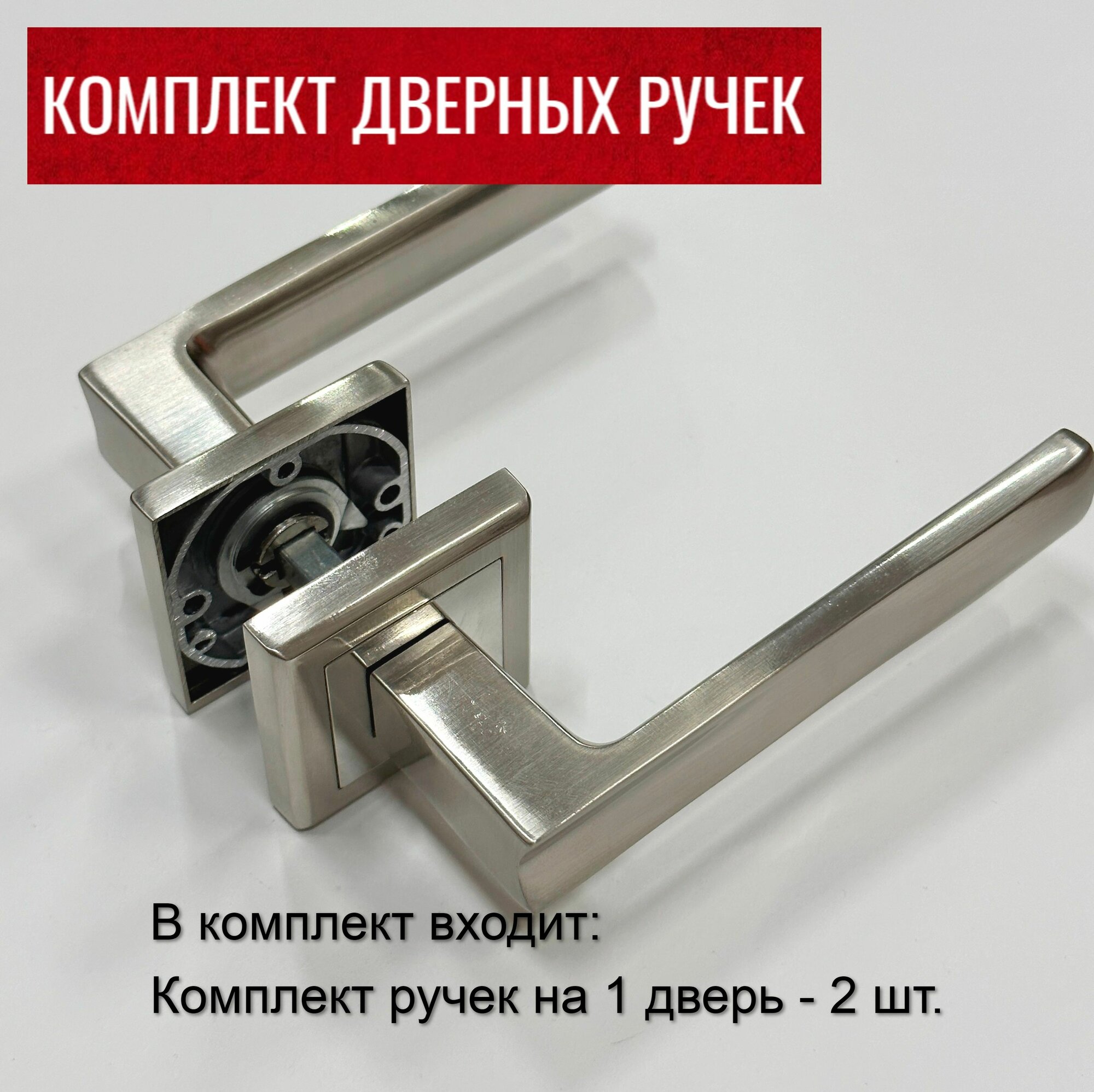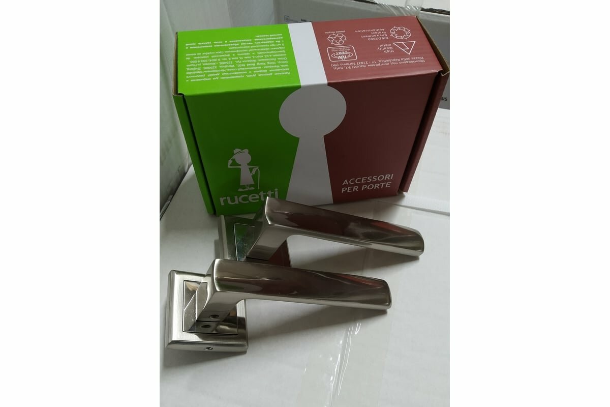 Ручка дверная Rucetti RAP 14-S SN/CP белый никель/хром, ручки для межкомнатных дверей на квадратной розетке комплект, фурнитура