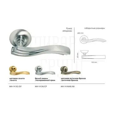 Мираж, ручка дверная межкомнатная MH-14 SN/CP, цвет - белый никель /хром