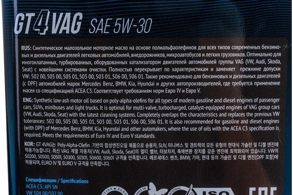 Синтетическое моторное масло на PAO основе GT 4 VAG 5W-30 (VW 504/507)
