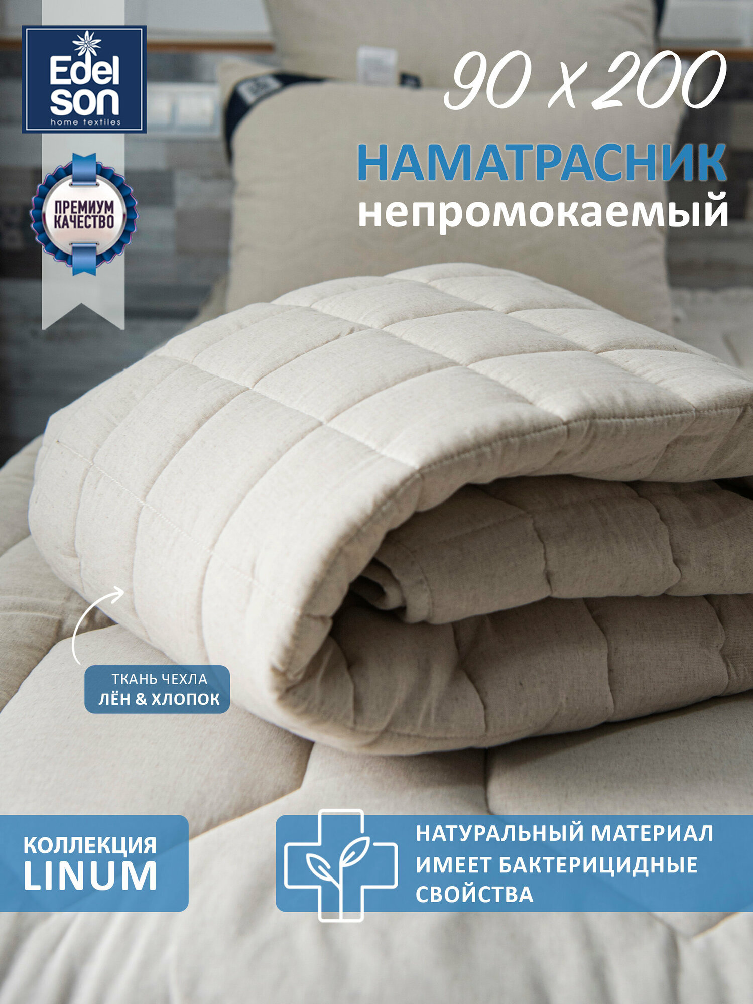 Наматрасник непромокаемый лен Edelson LINUM AQUA 90х200 см