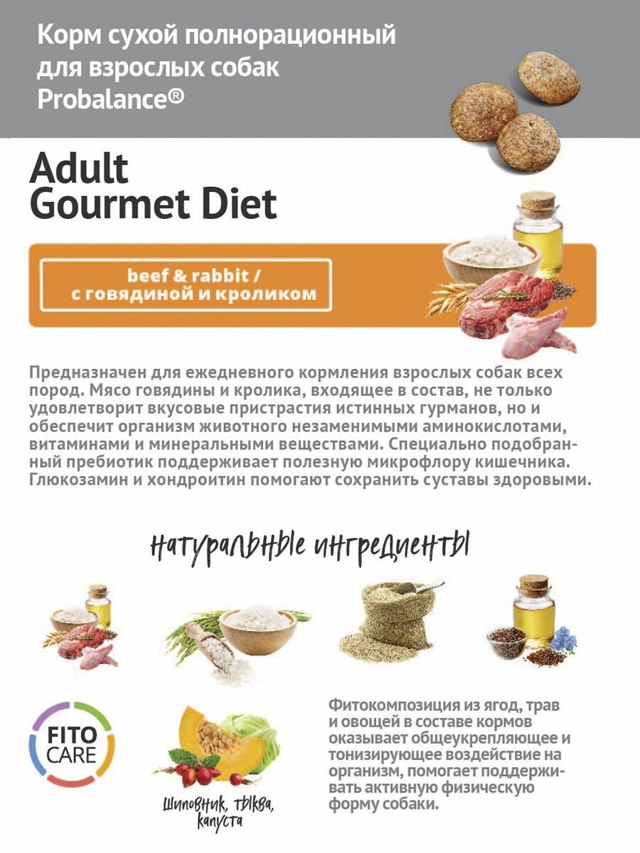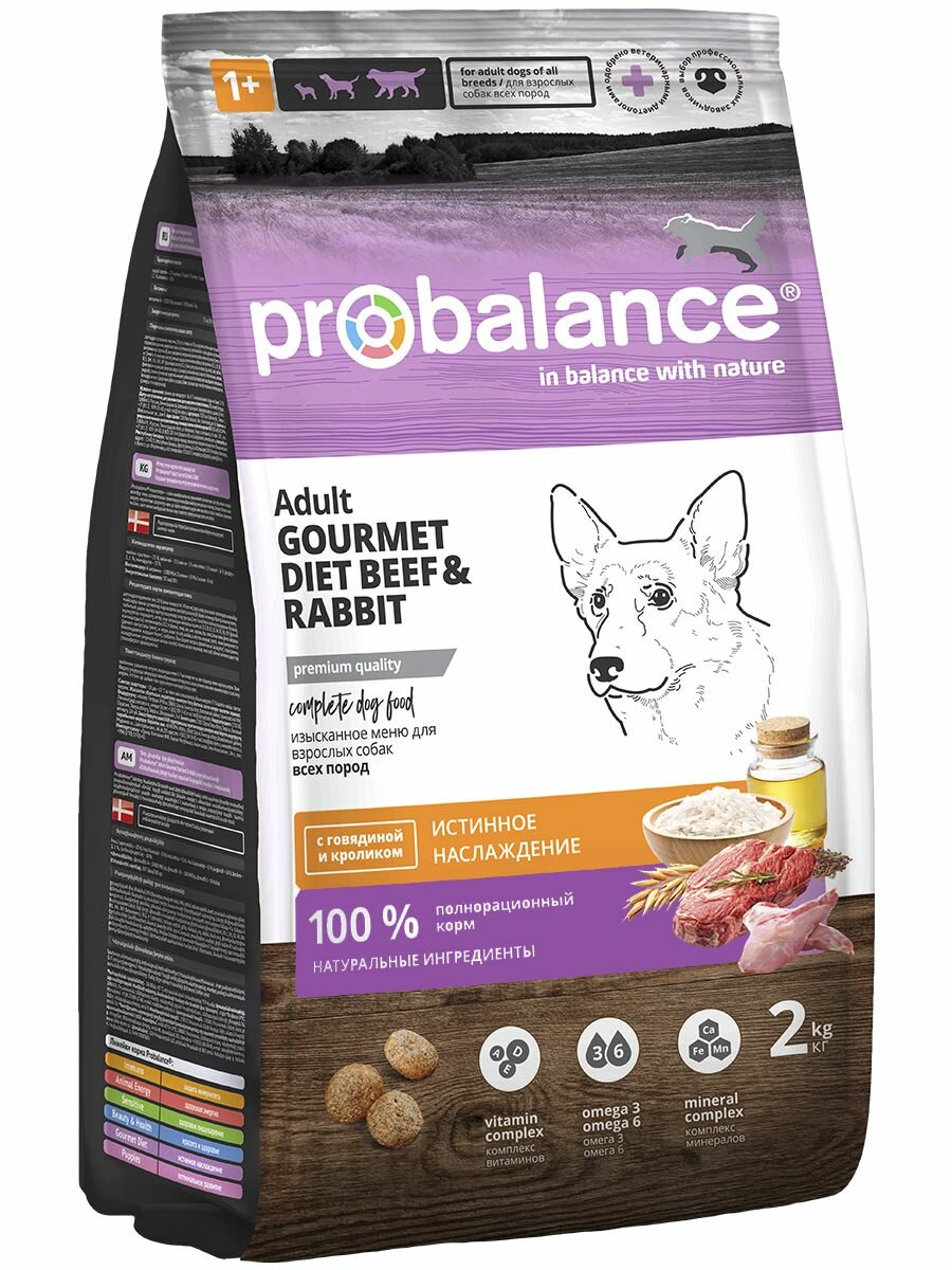 Сухой корм ProBalance Gourmet diet Adult для взрослых собак с говядиной и кроликом, 2кг
