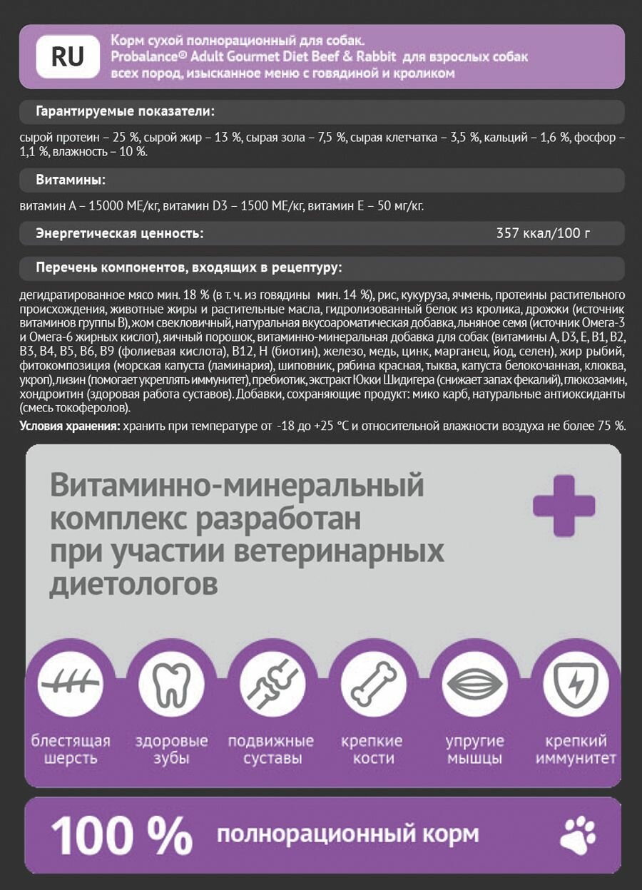 Ниже Вы можете прочитать отзывы на Probalance для собак всех пород Adult Gourmet Diet, с говядиной и кроликом, мешок 2 кг, ознакомится с подробными характеристиками, посмотреть интересные обзоры и фотографии на Probalance для собак всех пород Adult Gourmet Diet, с говядиной и кроликом, мешок 2 кг.