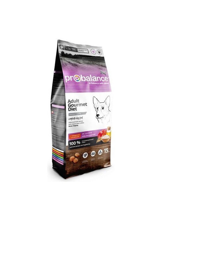 Сухой корм ProBalance Gourmet diet Adult для взрослых собак с говядиной и ягненком, 15 кг