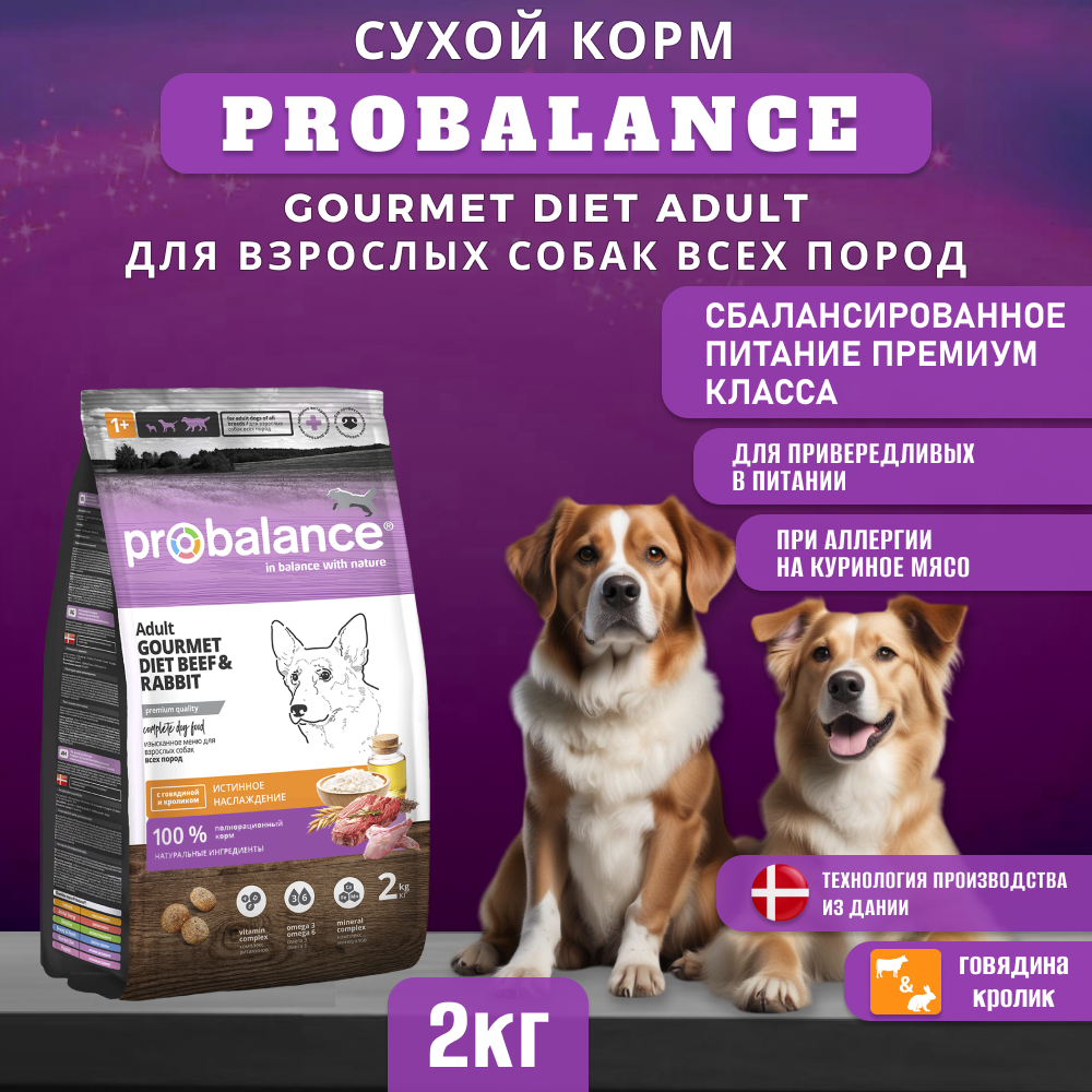 Купить Сухой корм ProBalance Gourmet diet Adult для взрослых собак с говядиной и кроликом, 2кг
