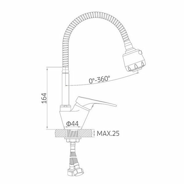 Cмеситель для кухни A84850, однорычажный, гибкий излив, силумин, хром