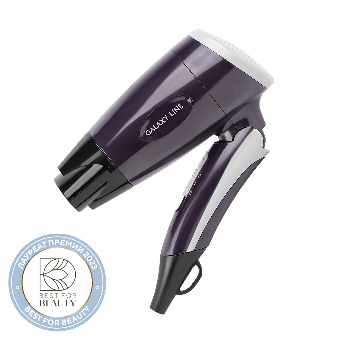 Фен для волос дорожный Galaxy LINE GL 4338, профессиональный для укладки 1200 Вт, складная ручка, насадка-концентратор, фиолетовый/черный/серый