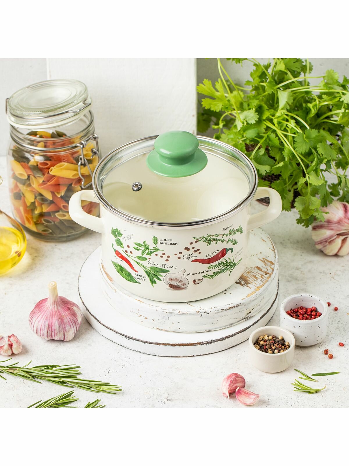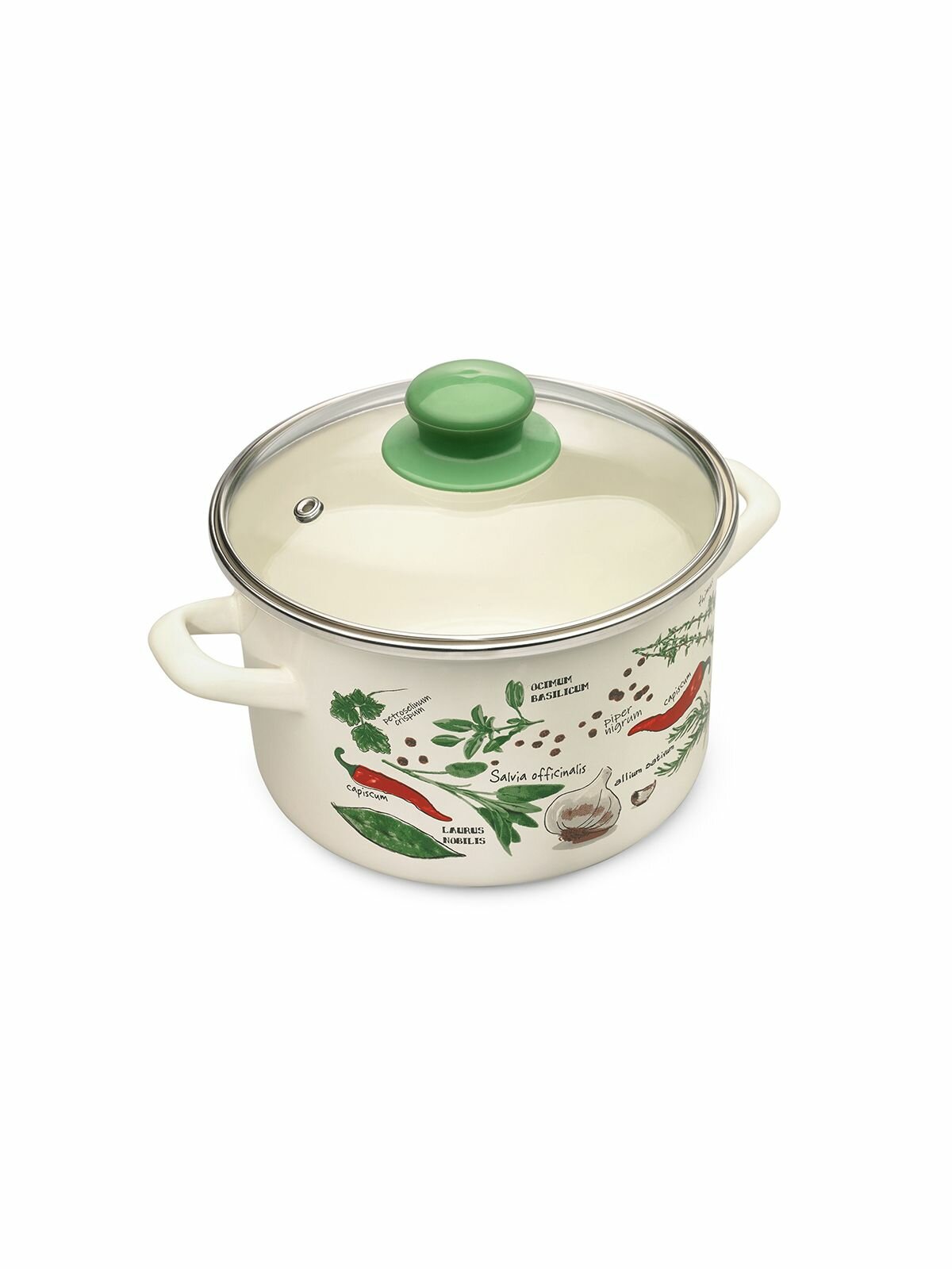 Кастрюля глубокая эмалированная со стеклянной крышкой, 2л, Специи