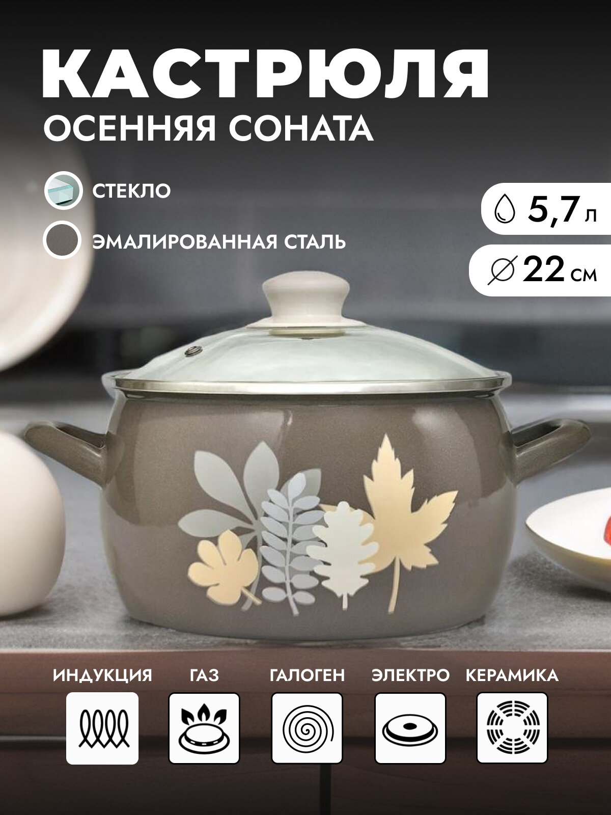 СохранитьКастрюля глубокая эмалированная со стеклянной крышкой, 5,7 л, Осенняя соната интересное: