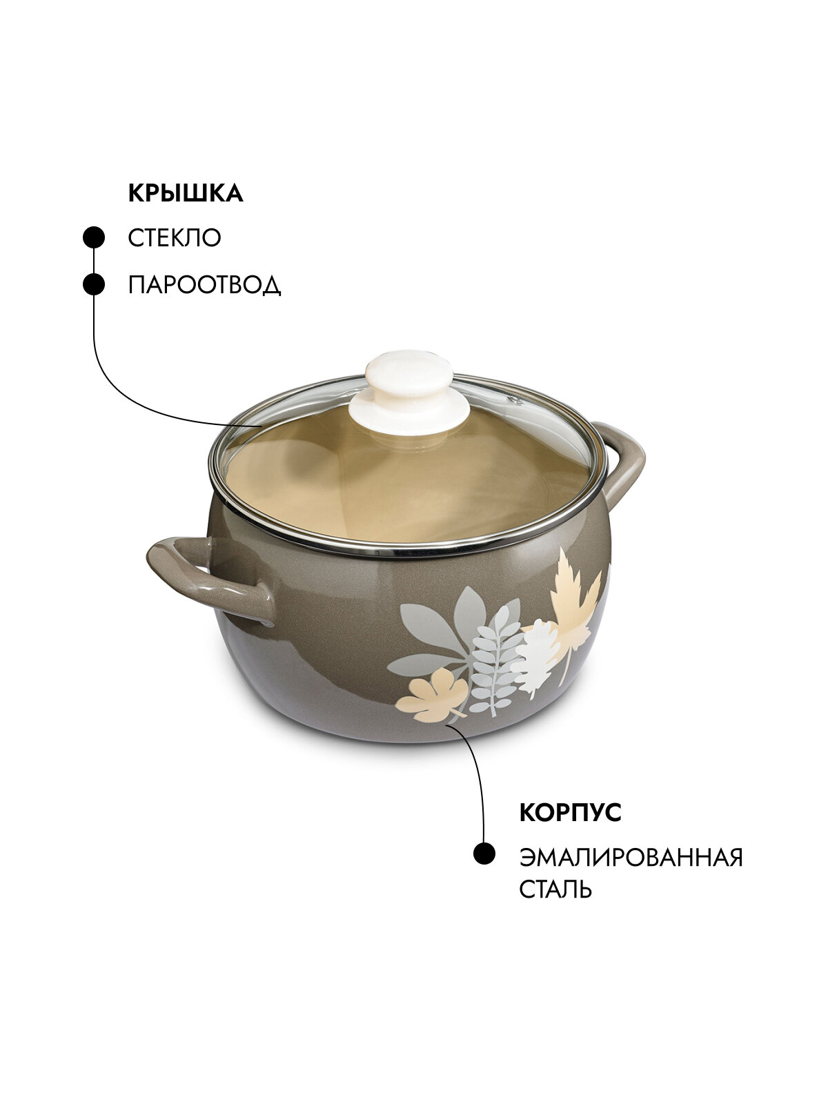 Купить Кастрюля глубокая эмалированная со стеклянной крышкой, 5,7 л, Осенняя соната
