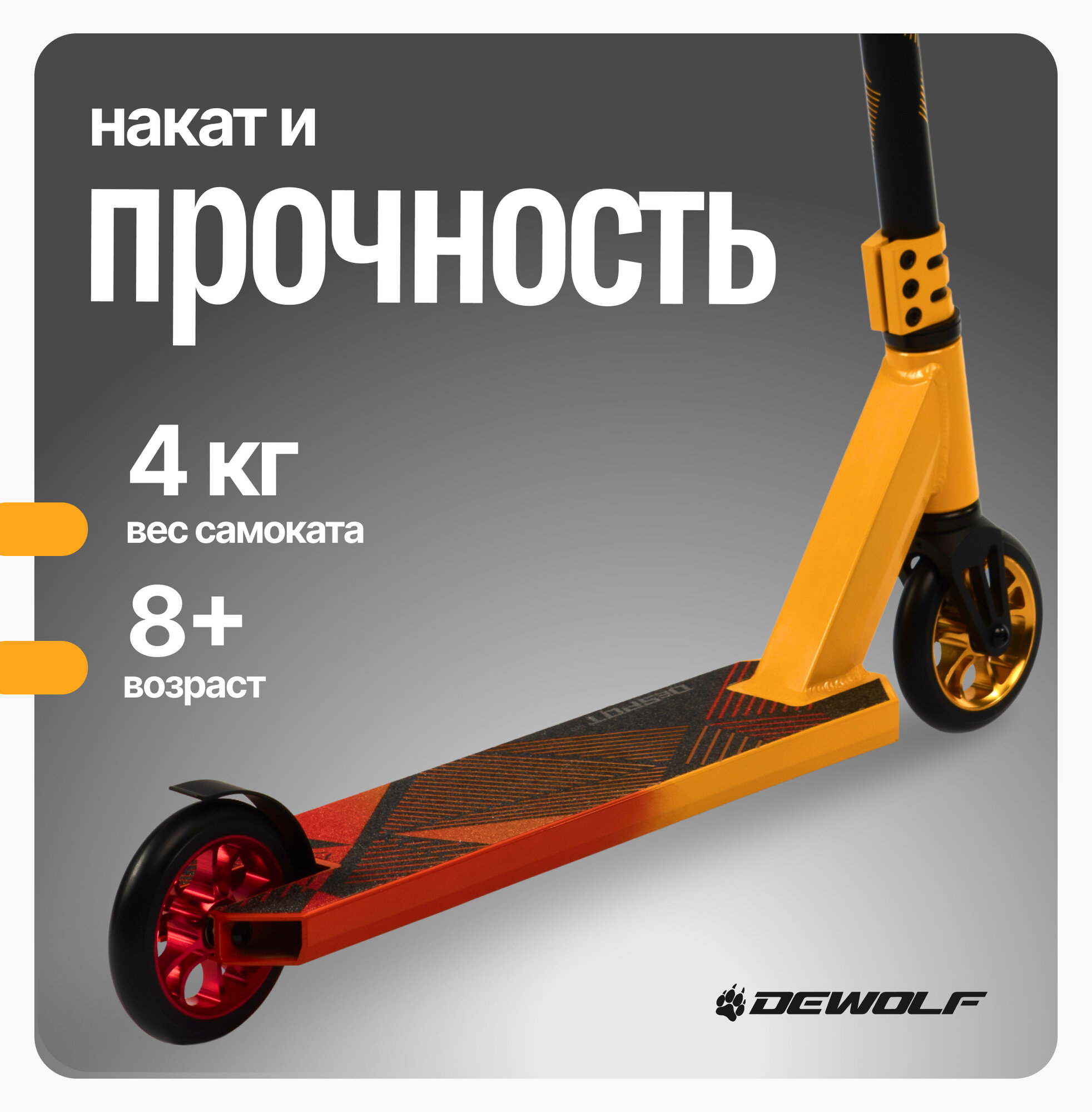 Самокат Dewolf Despot 120 Трюковый, Цвет orange-red